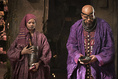 Neben Killmonger und seinen Vorstellungen zur Gerechtigkeit, gibt es mit Ulysses Klaue (Warum musste man das englische Klaw ersetzen? Man sagt doch auch nicht Eisen Man!) zudem noch einen abgrundtief bösen Schurken, der zwar von Andy Serkis nahe am Overacting gespielt wird, doch ungemein Spaß macht. Auf jeden Fall ein weiteres Highlight des Filmes! Ebenfalls überzeugend ist Danai Gurira als Leibwächterin Okoye, die immer mal wieder einen trockenen Spruch auf den Lippen hat und T'Challa stets helfend zur Seite steht. Etwas nervig dagegen ist der Q Verschnitt Shuri mit ihrem besserwisserischen Mundwerk. Apropos Mundwerk. Im englischen Original haben alle Wakandaner einen ziemlichen Akzent, welcher im deutschen weggefallen ist. Ob man dies nun gut oder schlecht heißen will, sei jedem selbst überlassen. Technisch gesehen gibt es abschließend wenig zu bemängeln und die CGI Effekte sind meist ganz ordentlich geworden, sieht man mal von einem Nashorn und ein paar wenigen Weitwinkelaufnahmen ab. Vor allem der Black Panther bewegt sich anatomisch meist korrekt und nicht übertrieben.