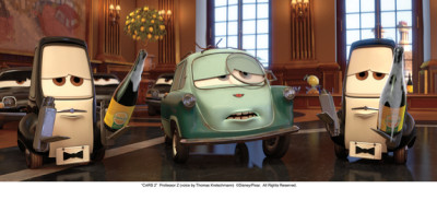 Die Story ist somit nicht der Renner, doch wie schon beim ersten Teil sind es eher die Details, welche begeistern. Gestartet wird in Tokyo, welches natürlich prädestiniert für den Kulturschock und allerhand Gags ist. Dies wird auch ordentlich zelebriert und macht Spaß. Leider ist man mit Völkerspezifischen Gags in den folgenden Locations wie London etwas sparsamer. Dafür kommen wiederum Fans vom James Bond voll auf ihre Kosten. Und auch die ganzen Fahrzeuge sind ihren Rollen entsprechend. Vor allem Professor Z als Zündapp Janus inkl. Monokel und Halbglatze. Herrlich! Auch die anderen Fahrzeuge passen bis zur kleinsten hervorragend. So „hervorragend“, dass einige für die entsprechenden Märkte angepasst wurden. Startet in den USA noch Jeff Covette alias Jeff Gordon, gibt sich hierzulande Sebastian Schnell alias Sebastian Vettel die Ehre. Der große Charme kommt auch durch die Syncronsprecher zustande. Zwar wurden Sprecher wie z.B. McQueen ersetzt (vorher Daniel Brühl, jetzt Manou Lubowski), doch wurden alle anderen ansprechend vertont. So gibt sich die deutsche Stimme von Daniel Graig als Agent McMissile die Ehre (im Original Michael Caine).