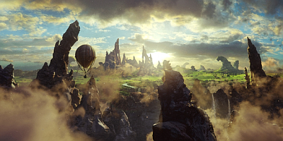 Wie das Sequel aus den 1930er Jahren, startet auch die Vorgeschichte in s/w und im 4:3 Format. Sobald Oz aber mit seinem Heißluftballon den Sturm hinter sich gelassen hat, öffnet sich das Bild ins Breitbild und füllt sich langsam mit Farbe. Dabei schwenkt die Kamera vom Gesicht rüber zur fantastischen Märchenwelt, was sehr beeindruckend ausschaut und auch in der 2D Fassung des Filmes wirkt. Hier zeigt Regisseur Sam Raimi gleich zu Anfang, wo der audiovisuelle Hammer hängt! In Oz angekommen überflutet einen der Film mit seinen Reizen und es kommt am laufenden Band zu optischen Leckerbissen. Dabei erinnert der Stil ein wenig an Tim Burtons „Alice im Wunderland“, wenngleich der Look hier um einiges perfekter und dank einiger echter Studiobauten nicht so künstlich daherkommt. Aber auch die Kostüme wissen auf ganze Linie zu überzeugen und unterstreichen die einzelnen Charaktere.