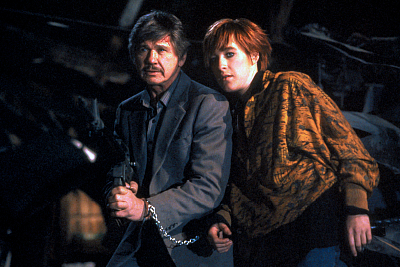 Charles Bronson ist eine Ikone des Selbstjustiz Thrillers und festigte seine Rolle bereits 1974 mit dem Klassiker “Ein Mann sieht rot”, welcher der Beginn der “Death Wish” Reihe war. Bronson gibt wie immer den knallharten und keine Miene verziehenden Cop, der auf seinem Rachefeldzug nur wenig Rücksicht nimmt. Dieses Mal kann er jedoch nicht so leichtfertig und Rücksichtslos alles niedermachen, da er eine angekettete und ihm dann doch recht sympathische Kleinkriminelle im Schlepptau hat. Diese hat zudem eine große Klappe, sorgt für Abwechslung im Rache Alltag und haut einen Kalauer nach dem anderen raus. Sprüche wie “Du kannst mir mal in die Socke husten, Opa!“ oder typische Spencer/Hill Beleidigungen wie Gurkennase sorgen für etliche Lacher und lockern den Film ziemlich auf.