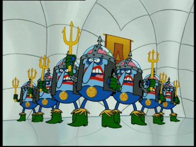 Dieses Abenteuer erinnert zeitweise an „Charlie und die Schokoladenfabrik", ist Spongebob-untypisch mit viel Musik und Gesang unterlegt und an vielen Stellen offensichtlich vom Beatles-Trickfilm „Yellow Submarine" inspiriert. Das geht alles noch in Ordnung, selbst die ständigen Musical-Einlagen kann man ertragen, wären da nicht die ständigen Realfilmeinschübe von Patchie dem Piraten. Ich weiß nicht wer von Nickelodeon auf die Idee kam, dass dieser unlustige Typ den Humor von Kindern treffen würde, aber alle Szenen mit ihm sind nicht auszuhalten. So ist die Folge leider auch nur als durchschnittlich zu bewerten.