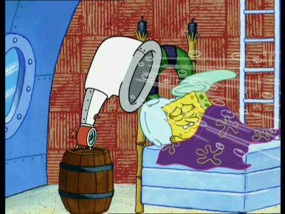 Das mache ihn zu einem mindestens ebenso guten Burgerbrater. Eine sehr witzige Folge also, mit vielen Situationen, die man selbst schon so oder ähnlich erlebt hat. „Das Nachtlicht" beleuchtet Sponges Angst vor der Dunkelheit, nachdem er einen Horrorroman gelesen hat. Er kauft sich daraufhin eine riesige Anzahl von Nachtlichtern, woraufhin sein Haus wie eine einzige Laterne aussieht. Doch erst diese ungewöhnliche Beleuchtung zieht die dunklen Kreaturen der Nacht an... Lustige kleine Folge, man könnte sie fast schon ein „Kammerspiel" zwischen Spongebob und Patrick nennen. „Aufstehen" ist mit nur vier Minuten die kürzeste Folge und zeigt die vollkommen irrsinnige Wahnsinnsprozedur, die Patrick jeden Morgen beim Aufstehen bewältigt. In „Warten" wartet Spongebob mit Patrick auf den Postboten, der ihn ein neues Spielzeug bringen soll. Die Folge ist leider etwas inhaltsleer, aber trotzdem unterhaltsam. Die Krätze zieht sich Spongebob und der Rest der Belegschaft der Krossen Krabbe in „Juckreiz" zu. Das ist zwar ziemlich eklig, aber trotzdem witzig. Den inhaltlichen Höhepunkt bietet sicherlich „Spionagekumpel", eine Parodie auf „Mission: Impossible" und „James Bond". Spongebob und Patrick sollen Plankton für Mr. Krabbs ausspionieren und durchlaufen dabei sämtliche Klischees des Agentenfilms. Der Humor ist hier sehr derbe und teilweise wohl kaum noch für Kinder geeignet, aber ältere Semester dürften ihren Spaß an den zahlreichen Anspielungen haben. Besonders das irrsinnige Masken-Ablegen am Ende ist für einige Lacher gut.