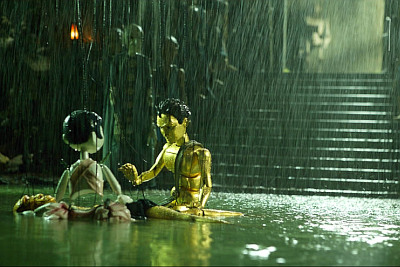 Aber auch das alltägliche Leben wird von den Strings beeinflusst. So gibt es keinerlei Dächer und beim schliessen einer Tür wird einfach eine Querstrebe nach oben gezogen. Interessant ist auch die Inszenierung einer Geburt und den Tod durch Altersschwäche. Aber wir wollen jetzt hier nich alle coolen Details verraten. Leider bringen die Marionetten auch einige Probleme mit sich. So schaut einiges etwas abgehackt und ungelenk aus und es gibt bis auf die Bewegung der Augen keine Mimik. Zudem gibt es auch Szenen, wo man die Figuren nur denken hört, was letztendlich etwas verwirrend ist. Dank der Puppenspieler und der allgemeinen Inszenierung hat man sich aber auch recht schnell daran gewöhnt. Ebenfalls nicht ganz ausgearbeitet ist die Story. Hier ging man eher konventionelle Wege und machte keine Experimente. So bekommt man hier altbekanntes vorgesetzt (Shakespear light), was aber auch noch mit ein paar erzählerischen Problemen behaftet ist.
