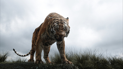 Doch es ist nicht alles gut gelungen. Während das Original mit gerade mal 78 Minuten kurz und knackig war, blähte man das “The Jungle Book” nun auf 106 Minuten auf. Während man die längere Laufzeit für eine tolle Einführung der Charaktere und das Leben im Wolfsrudel und Kennenlernen mit Balu nutzte, kommt es im Mittelteil zu einigen Längen in denen es Storytechnisch nicht vorran geht und man nur so viele Dschungelbewohner wie möglich abklappert. Ebenfalls nicht ganz logisch ist, warum einige Tiere sprechen können, andere wiederum nicht. Ein anderes Problem betrifft die deutsche Syncronisation des Filmes. Im Original hört man die Stimmen von Bill Murray als Balu, Ben Kingsley als Baghira, Idris Alba als Shir Khan (perfekt!), Christopher Walken als King Louie und Scarlett Johansson als Kaa (zum ersten Mal weiblich). Oft kommen auch die Charakterzüge der Sprecher durch, was besonders bei Balu und Baghira auffällt. Leider griff man hier nicht auf die bekannten deutschen Stimmen der Hollywood Stars zurück und wechselte auf bekannte deutsche Schauspieler, welche nicht immer passen und besonders fiese Gegenspieler etwas zahm wirken. Positiv dagegen kommt die technische Umsetzung daher, denn optisch ist “The Jungle Book” perfekt animiert und alles wirkt aus einem Guß. Leider wurde durch den realistischen Look die Mimik der Tiere zurückgeschraubt, was etwas steril wirken könnte.