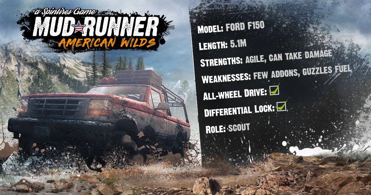 AM 23. Oktober erscheint der umfangreiche DLC "American Wilds" für Spintires: MudRunner. Unklar ist zwar nach wie vor, ob der kostenfrei oder eben nicht kostenfrei sein wird. Focus Home Interactive hat dafür aber schon mal alle Fahrzeuge enthüllt, die es im DLC zu steuern gilt. Erstmals finden sich unter den 9 Maschinen zahlreiche lizenzierte Vehikel von Ford, Chevrolet usw. wieder.
