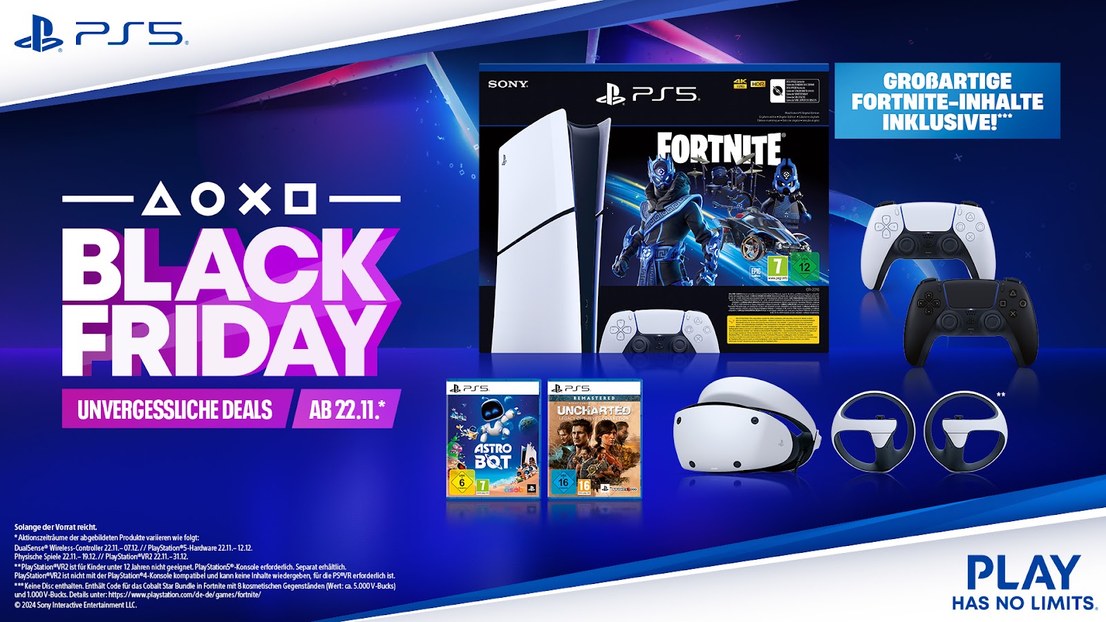 Die PlayStation 5 Fortnite-Bundles sind über direct.playstation.com und teilnehmende Handelspartner vom 22. November bis zum 12. Dezember erhältlich.