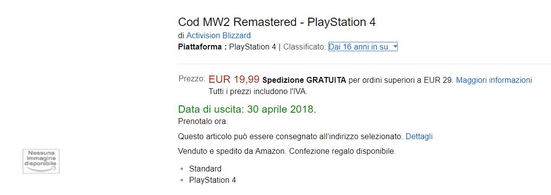 Geht es nach amazon Italien erwartet uns noch diese Jahr die Remastered Version von Modern Warfare 2. Der Preis wirkt leicht utopisch und auch der Termin wirkt nicht realistisch, aber die Hoffnung stirbt zuletzt: