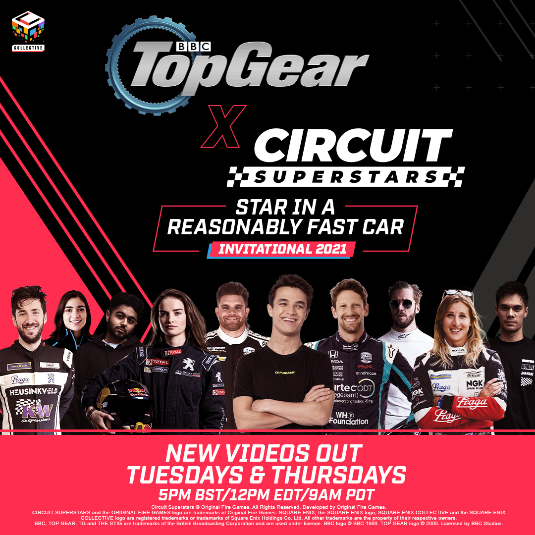 Square Enix und Original Fire Games haben sich für das demnächst erscheinende Rennspiel Circuit Superstars mit den BBC Studios und Top Gear zusammengeschlossen. Diese Zusammenarbeit beginnt mit einer besonderen Online-Version von „Star in a Reasonably Fast Car“. Die unterhaltsame Videoreihe wird am 9. September veröffentlicht und bietet eine große Auswahl an Motorsport-, eSports- und YouTube-Stars, die sich der Circuit Superstars-Version der Top Gear-Teststrecke stellen.
