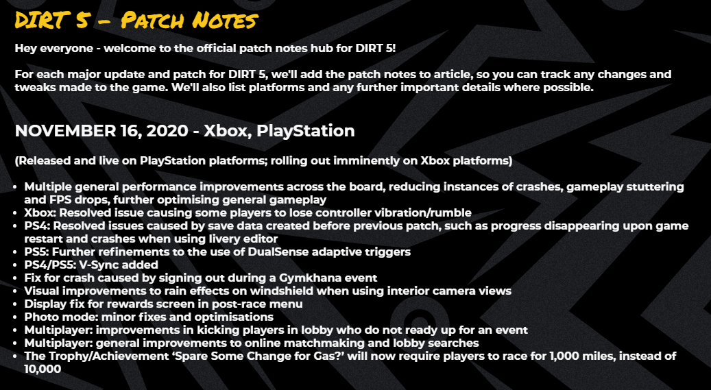 Dirt 5 - Update 1.04 ist online