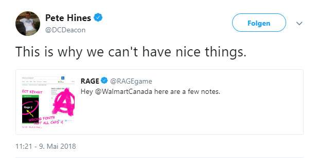Die wichtigste Spielemesse E3 steht uns in einem knappen Monat zwar noch bevor, doch bereits jetzt sickern einige Gerüchte hindurch. So listet die große kanadische Supermarktkette Walmart diverse Spiele in ihrem System, die noch gar nicht angekündigt wurden. Ja, sowas kommt vor - mag der eine oder andere denken, doch richtig spannend wird es erst, wenn diverse Fachleute wie Bethesdas Peter Hines via Twitter darauf reagieren.