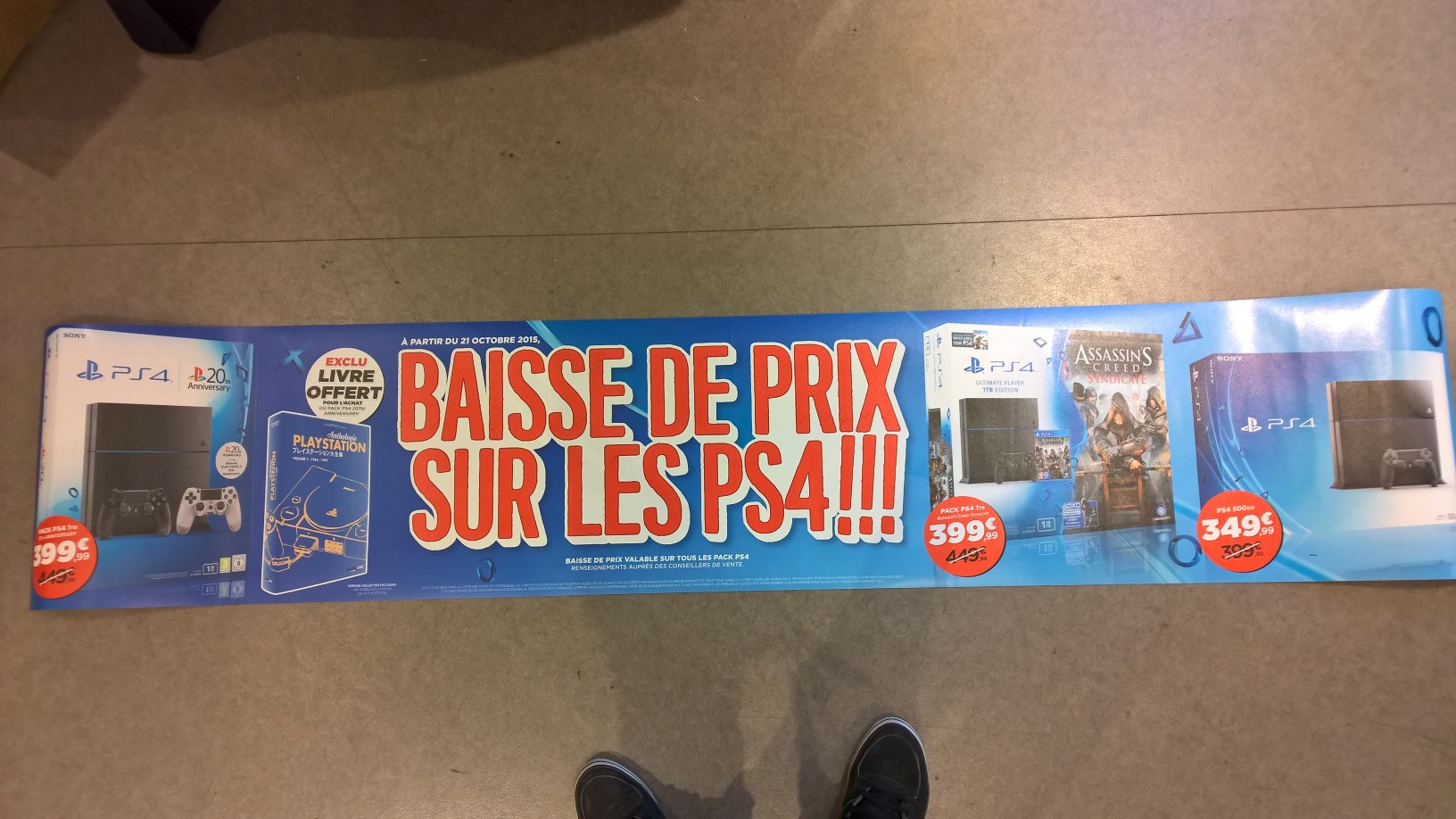 Nord-Amerika und Asien haben sie bereits: Die offizielle Preissenkung der PS4 auf 349,99€ für das 500GB Modell. Europa kommt nun wohl auch am 21. Oktober 2015 dran (also noch vor Sonys Pressekonferenz zur Paris Game Show am 27. Oktober). Niederländische und französische Geschäfte haben bereits Werbematerial erhalten bzw. verteilen Flyer dafür. Für Deutschland sollte das dann auch zu treffen.
