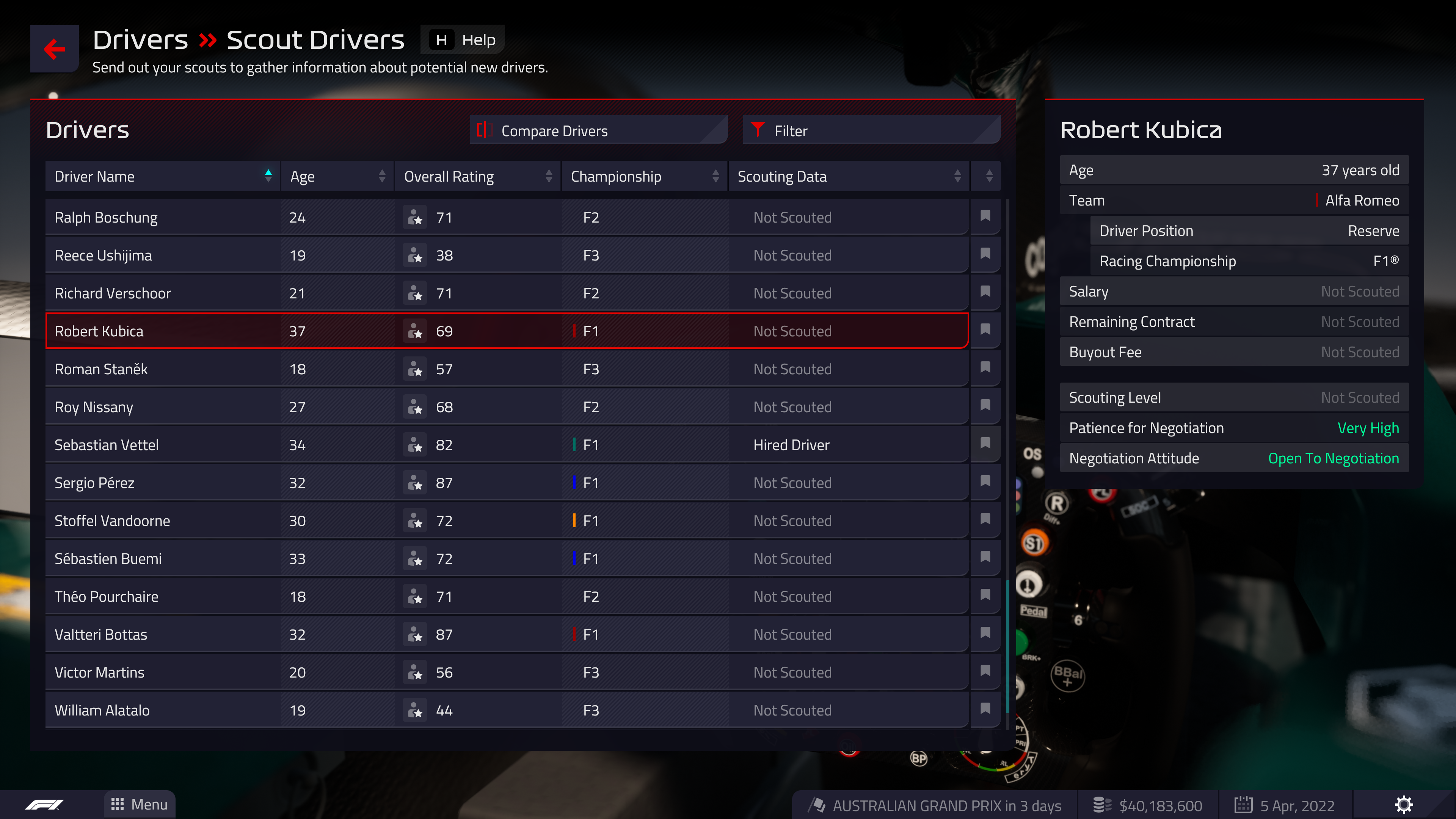 F1 Manager 2022 - Bewertungssystem der Fahrer & Crew