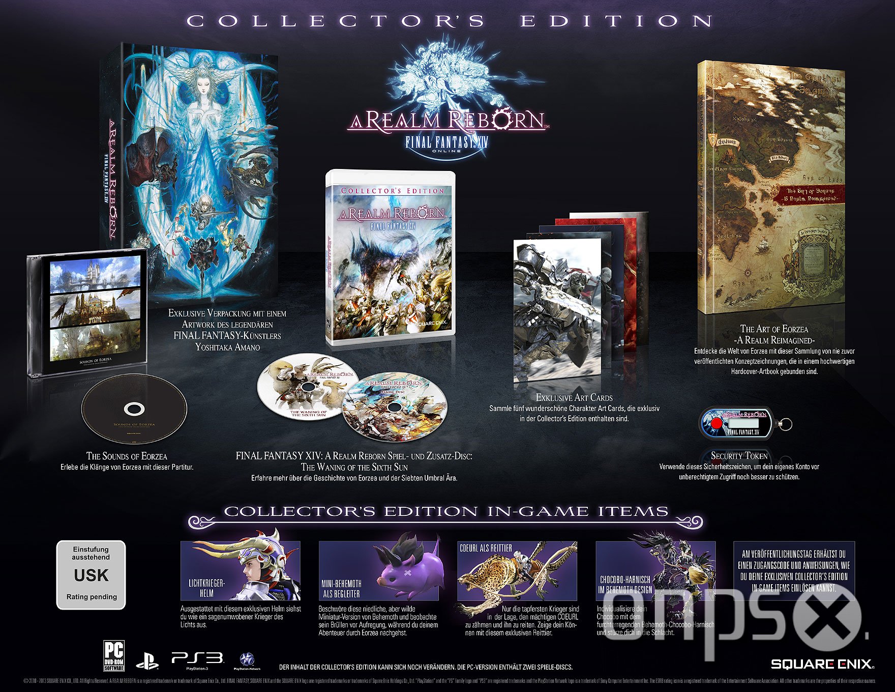 Zusätzlich dazu wird die FINAL FANTASY XIV: A Realm Reborn Collector’s Edition Folgendes enthalten: