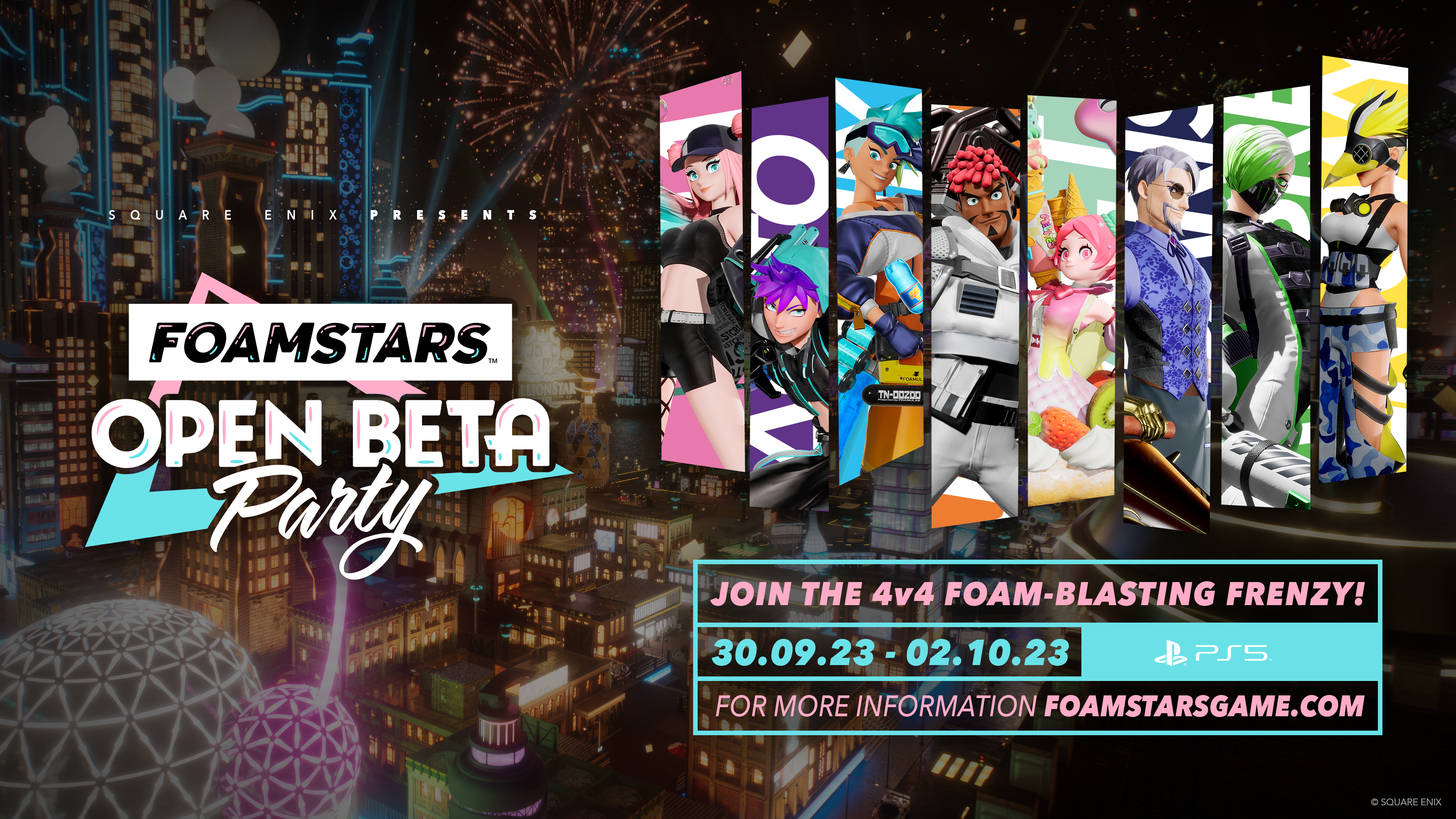 Square Enix gibt bekannt, dass die Foamstars Open Beta Party dieses Wochenende am Samstag um 03:00 Uhr startet. Alle PlayStation 5-Spieler können kostenlos bei der Open Beta Party des neuen 4-gegen-4-Schaumparty-Shooters teilnehmen, die im PlayStation Store als Download zur Verfügung stehen wird.