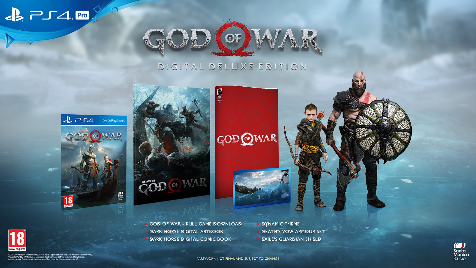 - Digital Edition: Neben zahlreichen Ingame-Boni dürfen sich Käufer der Digital Edition auf ein Dynamic Theme für die PlayStation 4, die digitale Ausgabe des ersten God of War-Comics sowie das Art Book aus dem Spiel freuen.