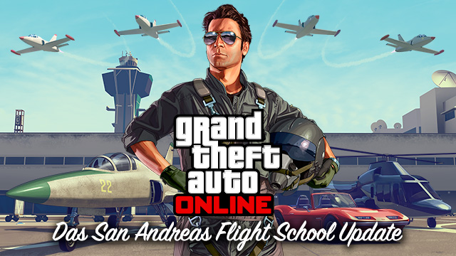 Ab heute könnt ihr mit dem San Andreas Flight School Update für GTA Online den Nervenkitzel und das Hochgefühl eines patriotischen Helden erleben. Dieses neue Update beinhaltet eine Reihe neuer Luft- und Landfahrzeuge, fliegerische Solo-Herausforderungen und vieles mehr. Das heutige Update enthält außerdem eine Vielzahl von Gameplay-Änderungen für GTA Online wie etwa erhöhte Auszahlungen für schwierigere Missionen und GTA$-Boni für das Absolvieren von Missionen mit anderen Spielern. Weitere Details dazu folgen in Kürze.