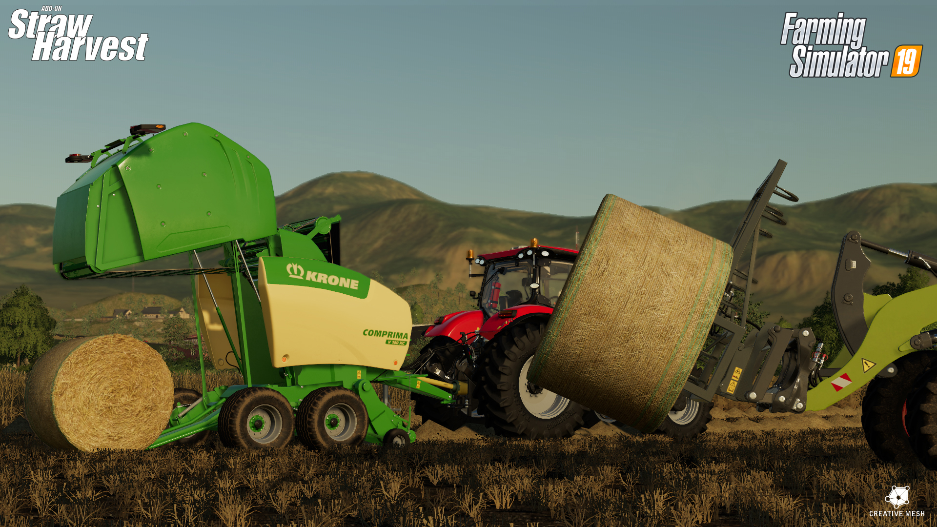 Was euch erwartet? Die umfangreiche Erweiterung dreht sich ganz um die professionelle Strohernte und Pelletierung. Selbstverständlich stellt euch Creative Mesh dazu auch die notwendigen Maschinen, Geräte und weitere Hilfsmittel zur Verfügung - darunter auch eine vielseitige Industriehalle zur Lagerung und Weiterverarbeitung. Enthalten sind zudem der weltweit erste mobile Pelletvollernter Krone Premos 5000, die Ballenpressen Krone BiGPack 1290 HDP II und Comprima V180xc und weitere Geräte.