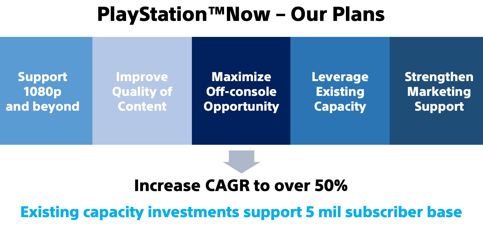 Sony hat über die Pläne ihres Streaming-Services PlayStation Now unterrichtet. So soll der kostenpflichtige Dienst weiter ausgebaut werden - man will damit 5 Millionen und mehr Abonnenten erreichen. Dafür soll die Technologie weiterentwickelt werden, unter anderem mit Unterstützung von 1080p Auflösung (aktuell wird nur in 720p gestreamet) und man will den Dienst auch auf anderen Geräten anbieten (IOS, Android, usw.). Natürlich sollen auch die Inhalte vergrößert werden.