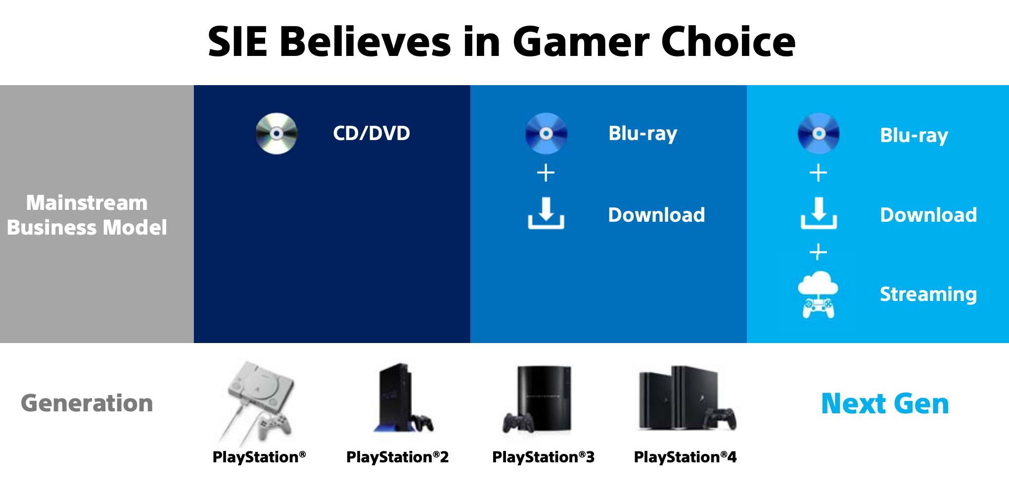 Doch der interessanteste Punkt ist in der letzten Folie verborgen. Dort kann man Sonys Vision für die PS5 erahnen, denn alle Next-Gen Games sollen nicht nur via Blu-ray Disc oder Digital Download spielbar sein, sondern auch via Streaming. Aktuell bietet so etwas noch kein Anbieter.