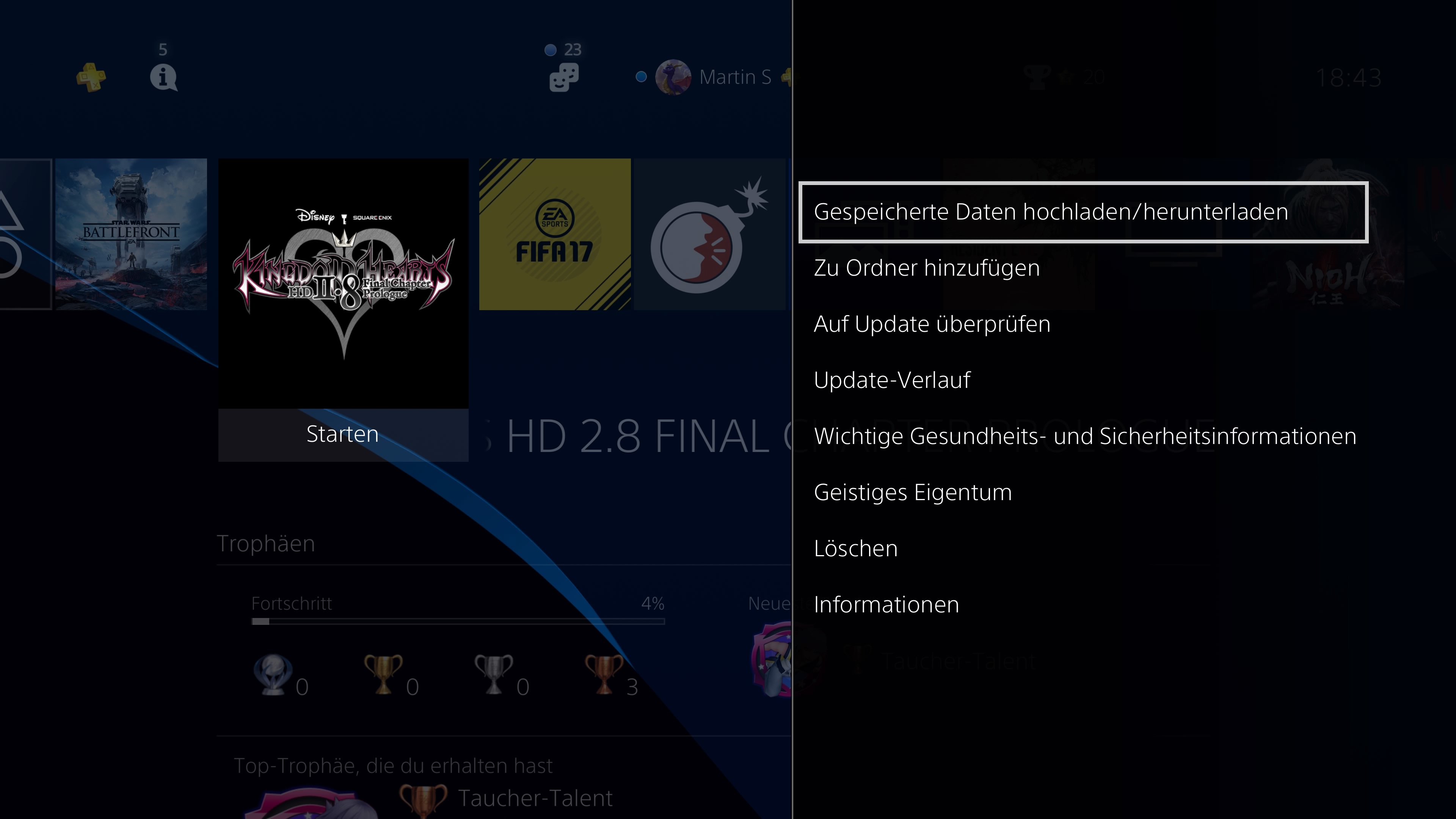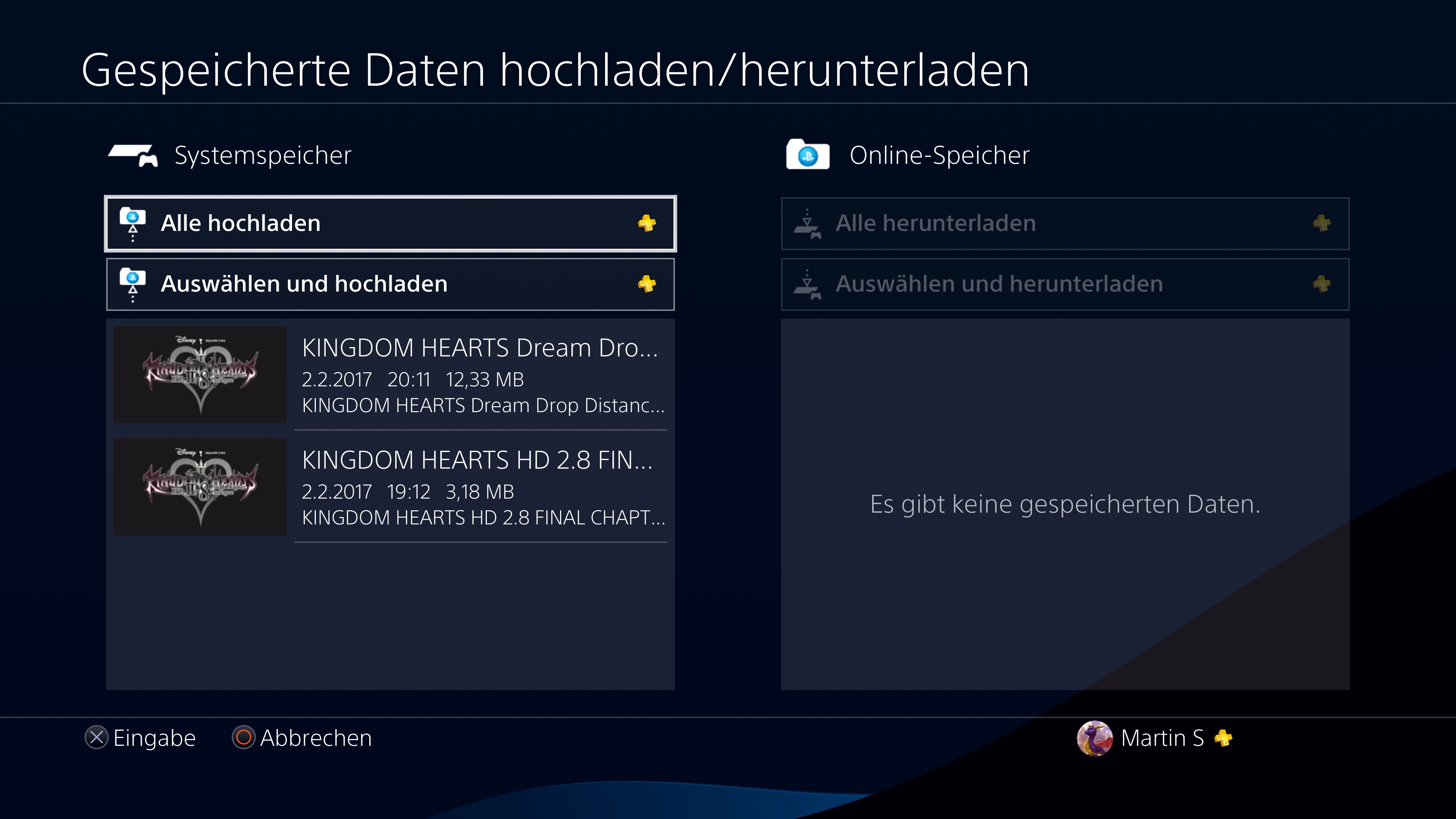 Ansonsten hat Sony das Quick Menu etwas angepasst und auch neue Standard-Themes hinzugefügt und neuerdings kann man vom Spieleicon im Hauptmenü direkt die Spielstände in die Cloud hochladen oder herunterladen.