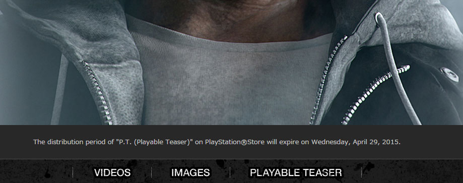 P.T. - oder auch Playable Teaser, ist eine kostenlose Demo, die einen Vorgeschmack auf ein mögliches neues Silent Hill Spiel liefern sollte. Wie durch die offizielle Website bekannt wurde, wird Konami die Distribution aber am 29. April 2015 einstellen. Danach werden neue PlayStation Spieler oder PS PLUS Abonnenten keine Chance mehr bekommen, dieses schaurige Kleinod anzutesten.