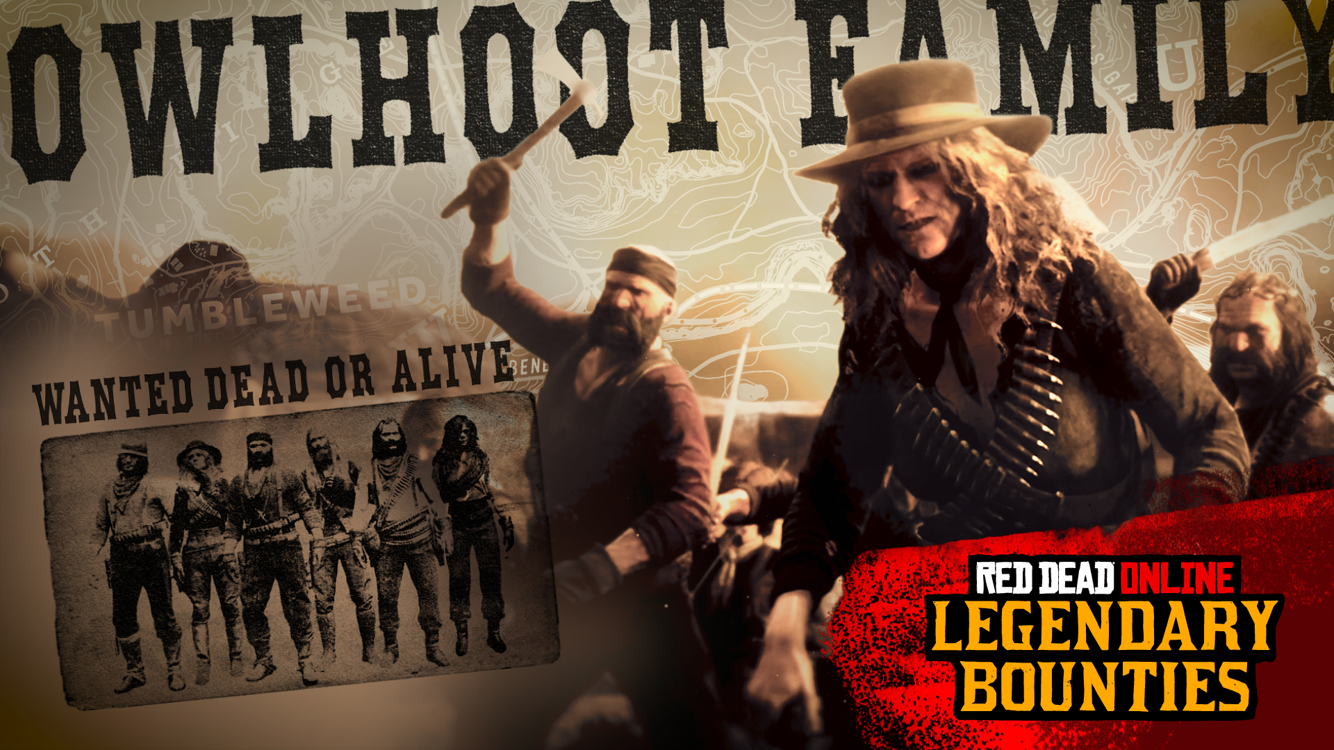 Rockstar Games hat mit sofortiger Wirkung ein Kopfgeld in Red Dead Online auf die höchstrangigen Mitglieder der Owlhoot-Familie ausgesetzt, die für die hinterhältigen Morde an vielen unschuldigen Reisenden verantwortlich sind. Diese berüchtigte Desperado-Bande treibt derzeit am Rio Bravo ihr Unwesen und wird wegen zahlreicher Fälle der Barbarei und des Mordes in der Gegend um den Benedict Pass gesucht. Es ist zwingend und absolut dringend erforderlich, dass diese gefährlichen Kriminellen bis zum 7. Oktober gefasst werden, um sich für ihre Missetaten zu verantworten – tot oder lebendig. Nähert euch dieser Gruppe mit extremer Vorsicht und denkt darüber nach, befreundete Kopfgeldjäger anzuheuern, wenn ihr versucht, mehrere Zielpersonen zu fangen.