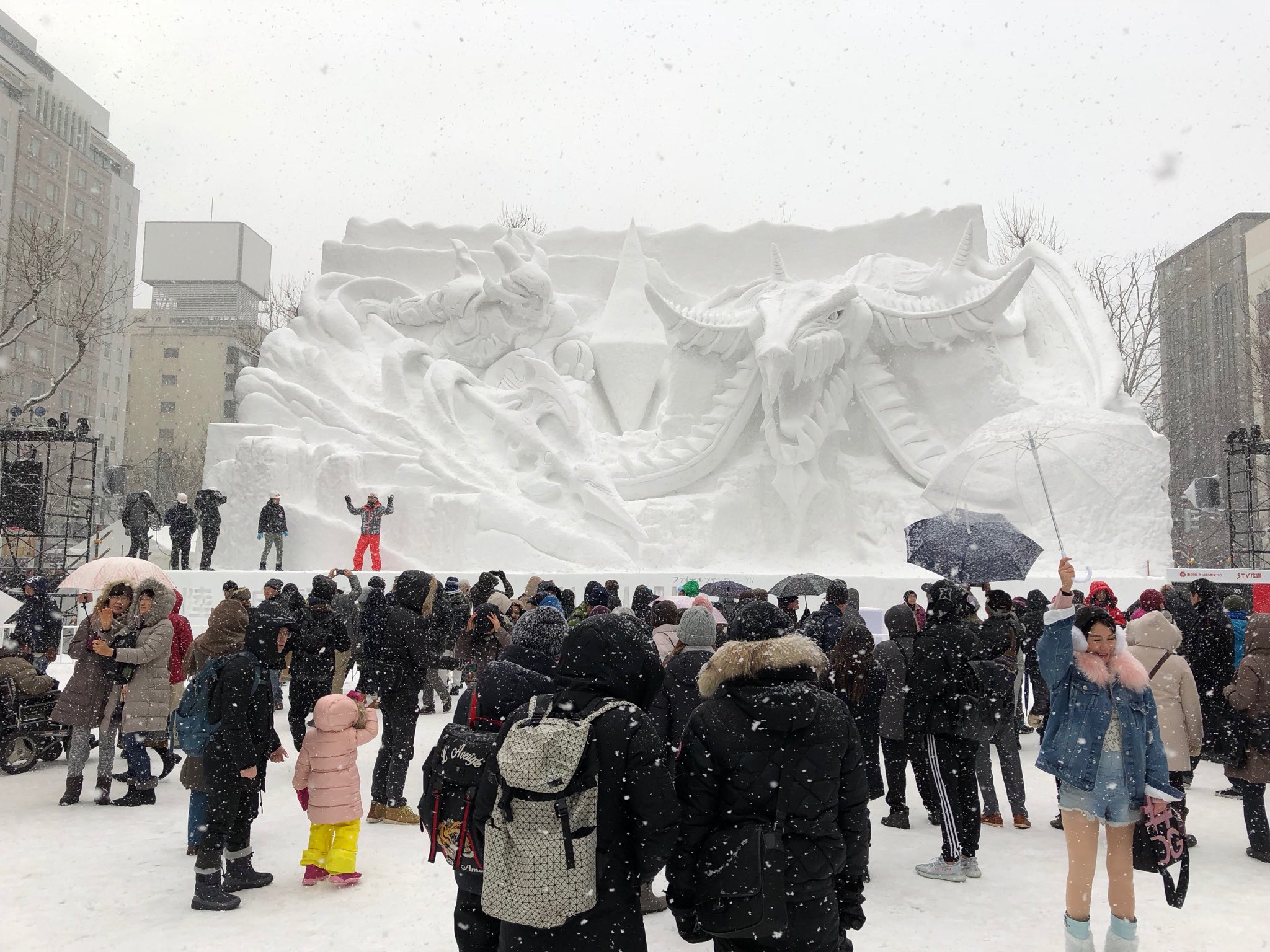 Riesige Final Fantasy XIV Schnee-Statue beim Sapporo Snow Festival