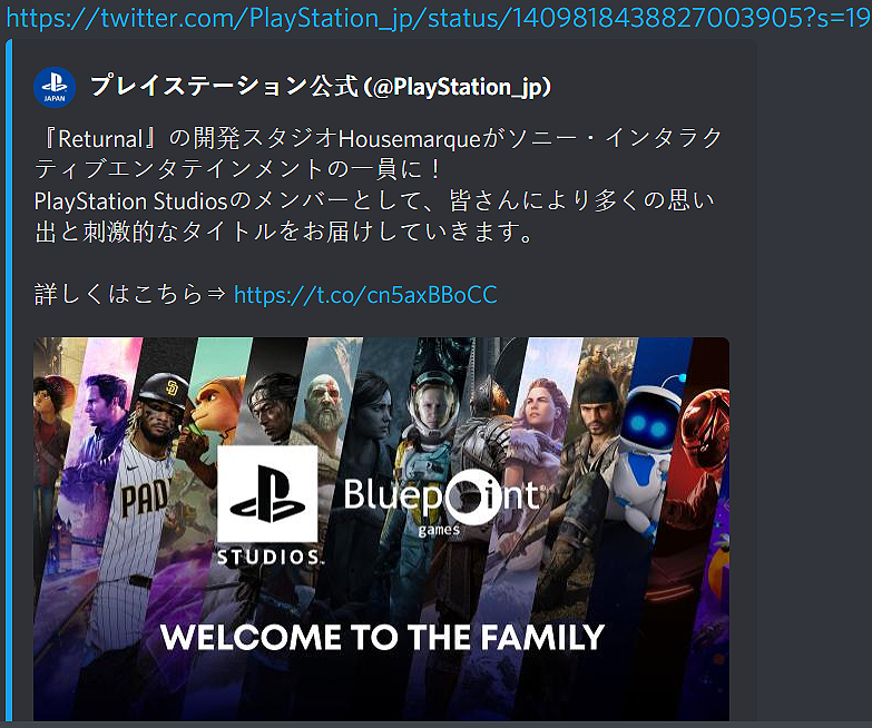 Ein Versehen oder doch ein schamloser Leak? Via Twitter postete Sony Japan die Neuigkeit, dass der Konzern den Entwickler Housemarque in der Firma willkommen heisst (alle Infos hier), doch das angehängte Bild zeigt nicht den finnischen Entwickler, sondern die Remake Spezialisten Bluepoint Games, die zuletzt Demon`s Souls auf die PS5 brachten und zuvor dem PS2 Klassiker Shadow of the Colossus einen frischen Anstrich verpassten.