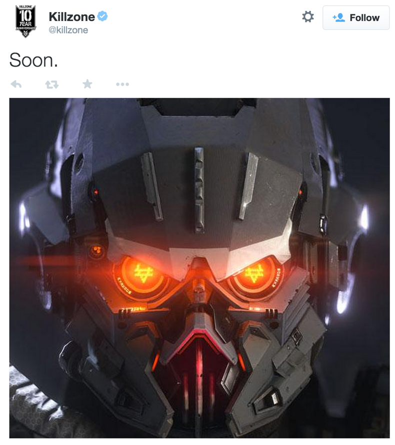 Der offizielle Twitter-Channel zu Killzone hat gerade ein Bild eines Helghast veröffentlicht und dazu nur das Wort "Soon" (bald) geschrieben. Erwartet uns somit eine Ankündigung eines neuen Spiels? Oder vielleicht neuer DLC für Killzone: Shadow Fall?