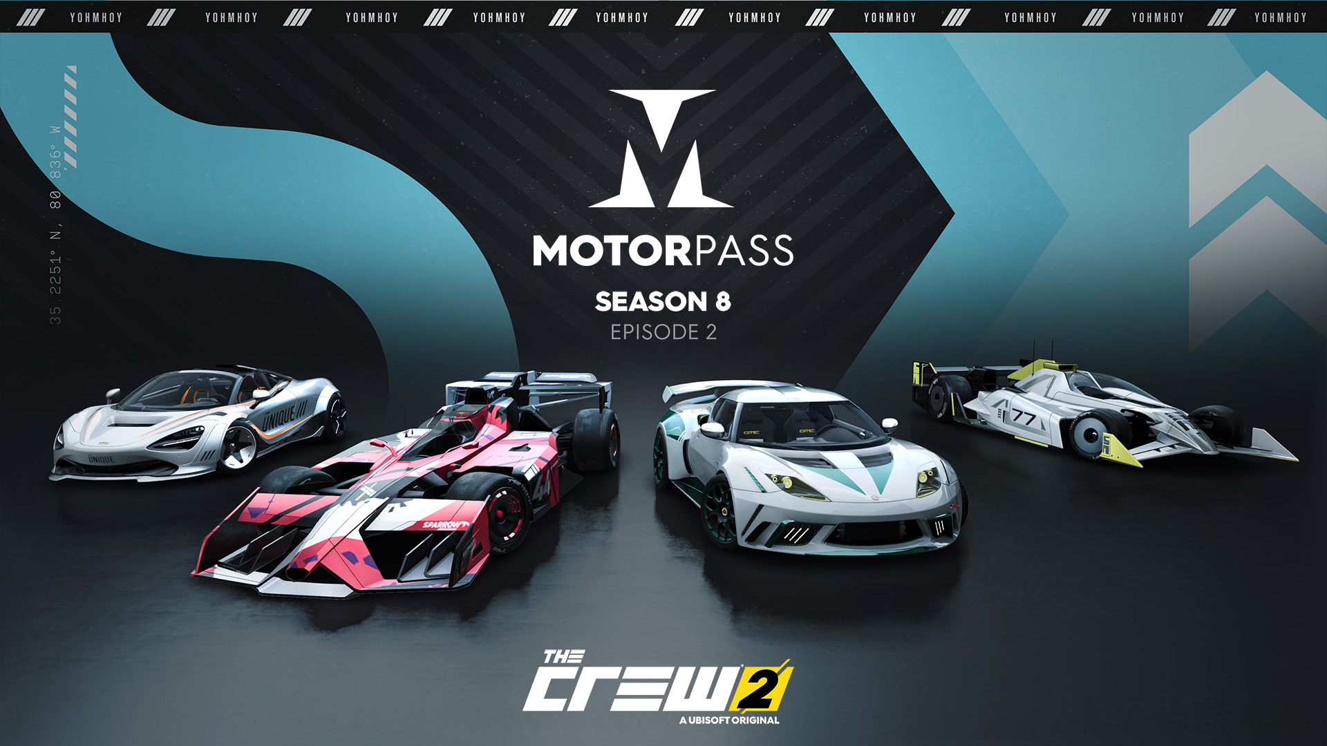 Mit dieser zweiten Episode wird auch ein brandneuer Motorpass eingeführt, der 50 Stufen mit exklusiven Belohnungen enthält, sowohl kostenlos als auch Premium. Belohnungen sind unter anderem Sondereditionsfahrzeuge wie der McLaren 720S Spider Blast Edition (Hypercar), der Proto Concept Sparrow Competition (AGP), der Lotus Evora GTE Overcut Edition (Straßenrennen) sowie verschiedene Prestigeobjekte, Outfits, Währungspakete (Crew Credits und Bucks) und vieles mehr.