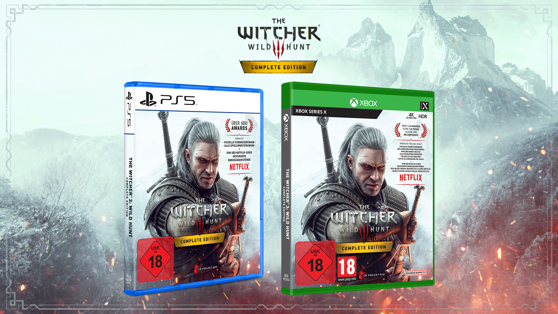 Darüber hinaus führt die Next-Gen-Version Gegenstände und eine Quest ein, die von der Netflix-Serie The Witcher inspiriert sind, sowie Neuerungen zur QoL-Verbesserung. Dazu gehören neue Kameraoptionen, Quick Sign Casting, ein Fotomodus, plattformübergreifender Spielfortschritt, die Optimierung der Karten und der Benutzeroberfläche, eine Auswahl an von der Community erstellten Mods, die nun direkt in das Spiel integriert sind - und vieles mehr. Die Complete Edition enthält außerdem alle bisher veröffentlichten Inhalte für The Witcher 3: Wild Hunt - dazu gehören die Erweiterungen Hearts of Stone und Blood and Wine sowie 16 zusätzliche Inhalte.