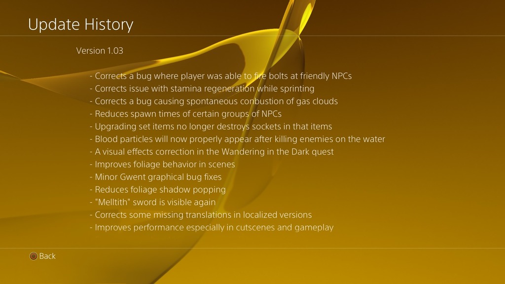 Wer aktuell The Witcher 3: Wild Hunt startet, wird einen Patch auf Version 1.03 herunterladen können. Das knapp 450MB große Update verbessert folgende Dinge: