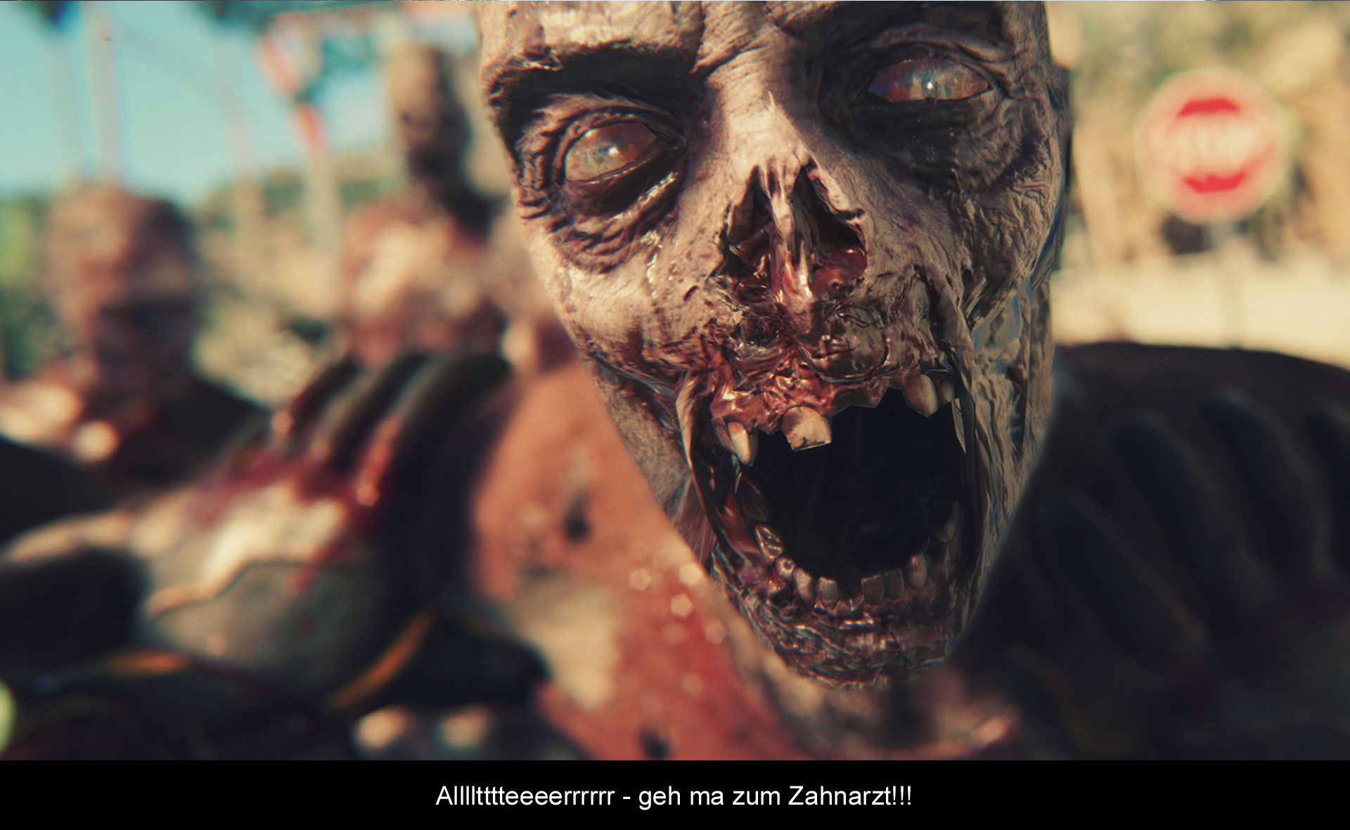 Vorbei sind die Zeiten von vielen grau und braun Tönen. Neuerdings leuchtet die Welt von „Dead Island 2“ in schönsten gelb mit vielen bunten Nuancen, ebenso wie man sich Kalifornien vorstellt. Daher gibt es keinen Tag- und Nachtwechsel und wohl auch kein Wetter. Die Welt soll immer positiv wirken. Zum Einsatz kommt im Spiel die Unreal Engine 4 und die macht ihre Arbeit gut. Denn das Spiel sieht toll aus, hat eine große Weitsicht und kann trotzdem mit einigen Details aufwarten und auch viele Zombies gleichzeitig darstellen. Zurzeit gibt es noch etwas Tearing, aber kein Aliasing oder andere Probleme, wodurch ein sauberes Bild entsteht. Für das fertige Spiel peilen die Entwickler übrigens 1080p mit 60 Bildern pro Sekunde an.