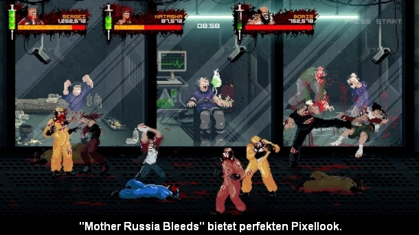 Spiele wie Streets of Rage gab es eigentlich seit Jahren nicht mehr, aber warum eigentlich? Mother Russia Bleeds zeigt eindrucksvoll, dass diese Art von Spiel noch eine Daseinsberechtigung hat und ist dabei keine simple Kopie, sondern hat mit den Medikamententhema sogar eine eigene Note hinzugefügt. Gameplaytechnisch funktioniert alles wie es soll und vor allem dank der grafischen Gewaltdarstellung und dem Soundtrack hat das Spiel einen bleibenden Eindruck hinterlassen. In der angespielten Fassung gab es zwar noch ein paar Bugs, aber die dürften bis zum Release im Mai/Juni 2016 ausgemerzt werden, wenn das Spiel dann mit acht Leveln zu je ca. 20 Minuten Spielzeit erscheint. Wir können den Release jedenfalls kaum erwarten, da hier ein tolles Couch Coop Spiel auf uns wartet. Ob das Spiel mit dem Gewaltgrad aber in Deutschland erscheint, muss sich erst noch zeigen.