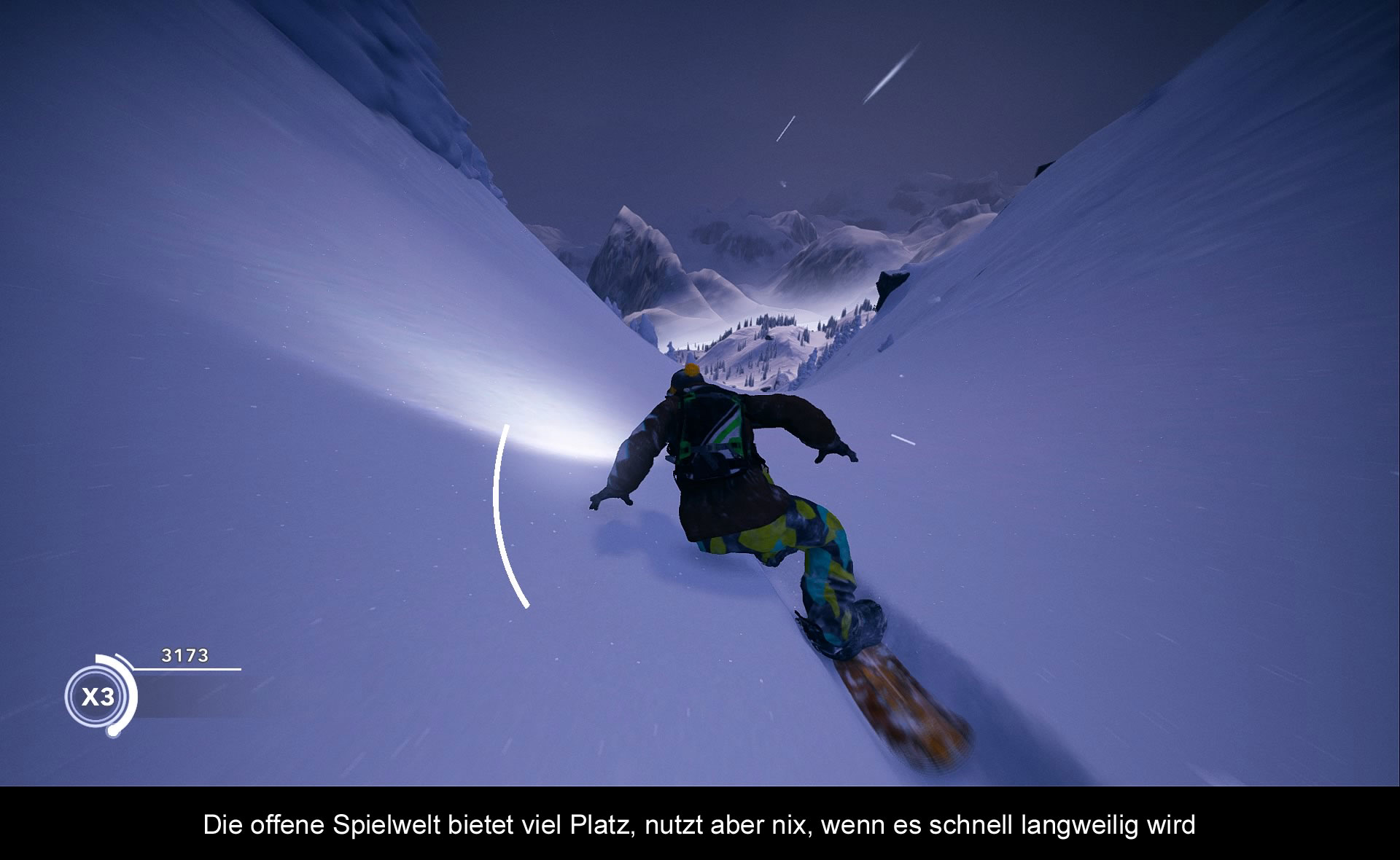 Eines vorweg, dem Team muss man gratulieren was die Darstellung der Alpen betrifft! Das Open World Spiel Gefühl ist wirklich einmalig. Jeden Hang kann man bezwingen, jede Abfahrt überrascht mit kleinen Details. Einmal rast man über die Dächer eines verschneiten Dorfs, vollführt waghalsige Tricks im Stunt Park oder man fährt entspannt und genießt die Gegend. Egal ob mit Schi oder Snowboard, für jeden ist was dabei. Will man die Strecken aus der Luft erkunden darf man auf eine Wingsuit oder einen Paragleiter zurückgreifen. Hat man halbwegs die Steuerung verstanden kann man an unzähligem Bewerben teilnehmen. Das Beste daran, das Spiel kommt ganz ohne Ladezeiten aus. Events werden blitzschnell neugestartet und zum Startpunkt kann man sich ohne Probleme hinteleportieren lassen. Die Grafik ist mehr als in Ordnung und die Darstellung des Geschwindigkeitsgefühl und des Schnees ist gelungen. Hier und da gibt es Framerate Einbrüche, aber diese werden hoffentlich noch weg gepatcht. Hört sich nach einem runden Paket an, gebe es nicht ein paar Kleinigkeiten.