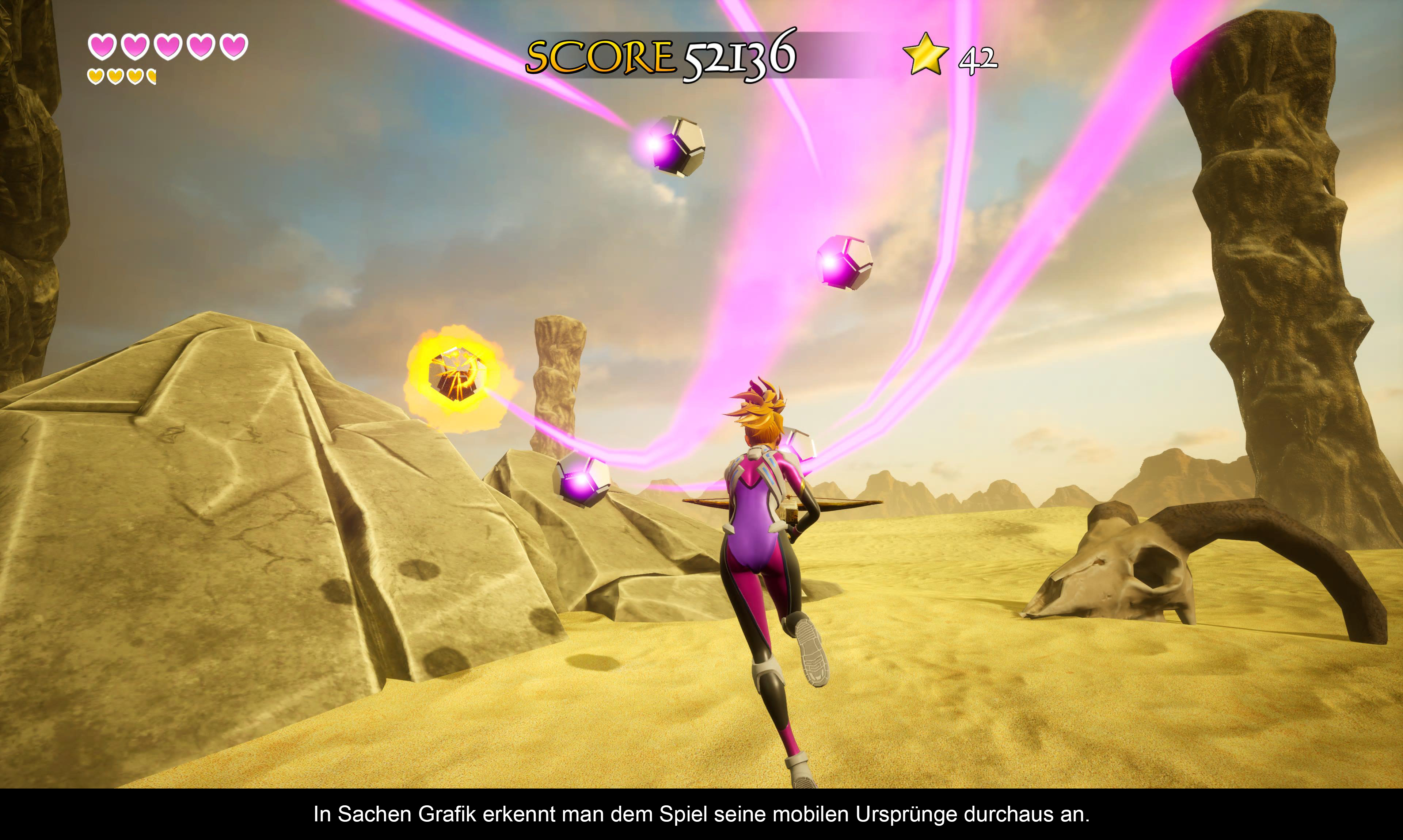 Leider muss ich zugeben, dass ich mit Air Twister nie so wirklich warm geworden bin. Einerseits kann ich mir durchaus vorstellen, dass das Spiel auf dem Smartphone einen gewissen Charme entwickeln kann, aber andererseits sieht die Realität so aus, dass ich der PS5 Version kaum Spielspaß abgewinnen konnte. Dies lag nicht nur am behäbigen Gameplay, sondern auch an den Welten an sich, die kaum an den Charme anderer bekannter Shoot ’em ups anknüpfen konnten.