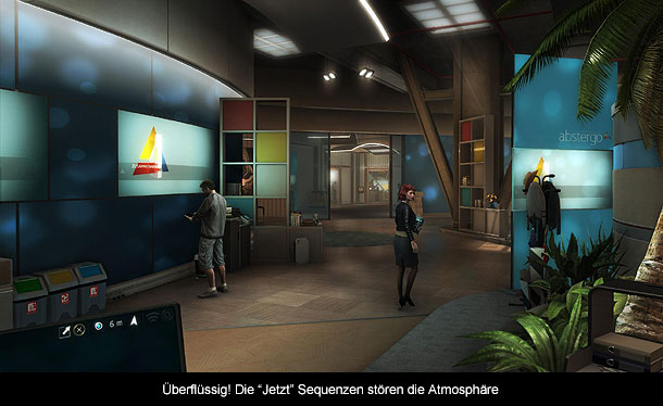 Was mir weniger gefallen hat, war das Missionsdesign der Kampagne. Noch immer ist man auf Gedeih und Verderb den Leveldesignern ausgeliefert und viel zu oft hat man keine frei Hand, in der Art und Weise, wie man eine Mission absolvieren möchte. Das führt zu einigen Trial & Error Abschnitten. Insbesondere, wenn man Schleichen muss, darf man exakt so vorgehen, wie es sich die Entwickler gedacht haben. Von einem Open World Spiel erwarte ich da einfach mehr – insbesondere nach fünf vorangegangenen Teilen, die mehr oder minder, die gleichen Probleme hatten. Die zahlreichen Nebenaufgaben sind dafür abwechslungsreicher und wirken weniger wie Sachen, welche nur dazu dienen sollen, die Spielzeit zu strecken. Vor allem die Seeschlachten funktionieren in Verbindung mit dem Aufrüsten des Schiffes gut. Aber auch die Tauchgänge sorgen für Abwechslung und sind ungemein atmosphärisch. Aber es fällt auch auf, dass Ubisoft stark bei seinen eigenen Spielen kopiert, wie zum Beispiel „Far Cry 3“. Ich muss nicht in jedem Spiel Tiere jagen, um Hilfsmittel herzustellen. Auch das Online-Minispiel „Kennways Flotte“ wirkt ziemlich aufgesetzt, genauso wie die Social-Challenges. Und warum man die „Jetzt-Sequenzen“ in der Ich-Perspektive eingebaut hat, verstehe ich bis heute nicht. „Black Flag“ wäre ein besseres Spiel, ohne diesen ganzen „Virtual Reality“ Kram, der – wie man bei den alten Teilen sieht – weder sonderlich spannend, noch konsequent durchgezogen wurde. Wenigstens braucht man keine Vorkenntnisse, um in der Geschichte mitzukommen.
