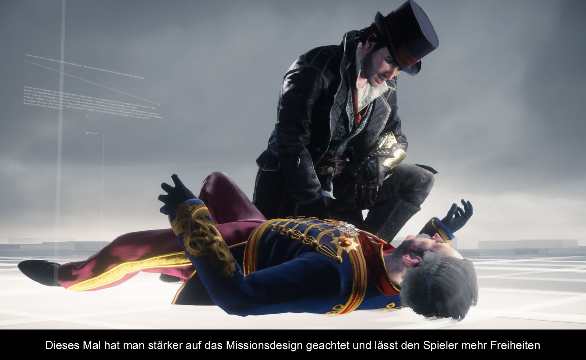 In „Syndicate“ beschränken sich die aktuellen Einspieler auf ein paar wenige Zwischensequenzen und Korrespondenz zum Lesen / Hören in der Enzyklopädie. Und das ist auch gut so, obwohl die eigentliche Story um Evie und Jakob Frye, also unsere beiden Protagonisten, auch nicht sonderlich ausgearbeitet und spannend daher kommt. Das liegt vielleicht auch am Oberschergen namens Crawford Starrick, der erst zum Ende hin, böse wirkt, ansonsten aber – verglichen mit unseren beiden mordenden Geschwistern – eher der sachliche und bodenständigere Typ ist. Also „hassen“ kann man ihn die meiste Zeit nicht, überhaupt gibt es kaum Gegner, denen man den Tod sprichwörtlich an den Hals wünscht.