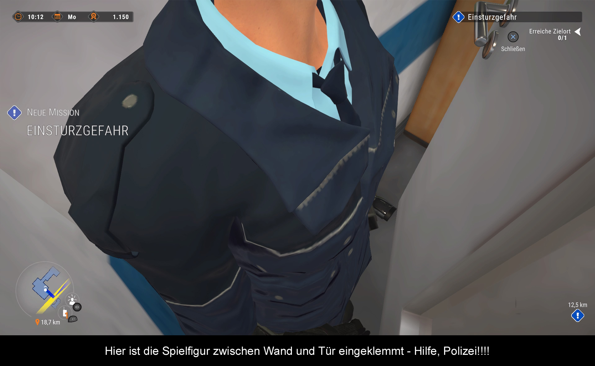 Jedoch fangen die vielen Macken des Spiels schnell an zu nerven. Allen voran die unterirdische Benutzeroberfläche. Die Karte ist beispielsweise viel zu klein und lässt sich nicht vergrößern. Das eigene Icon muss man darauf erst einmal finden und dann darf man auch noch raten, welcher Schnellreisepunkt auf welcher Fahrbahnrichtung liegt. Und gerade die will man später oft nutzen, da man sonst die langweiligen Autobahnfahrten ertragen muss. Doch es geht noch weiter. Am Einsatzort gelang es mir nicht, den Kofferraum zu schließen, weil das passende Icon nicht angezeigt wurde. Oder anfangs unterlief mir der Fehler, die Sirene nicht rechtzeitig abzustellen. Die ganze Zeit am Einsatzort plärrte dann das Tatütata aus den Boxen. Stieg man erneut ins Auto, konnte man nur die Mission abbrechen oder weiterspielen.