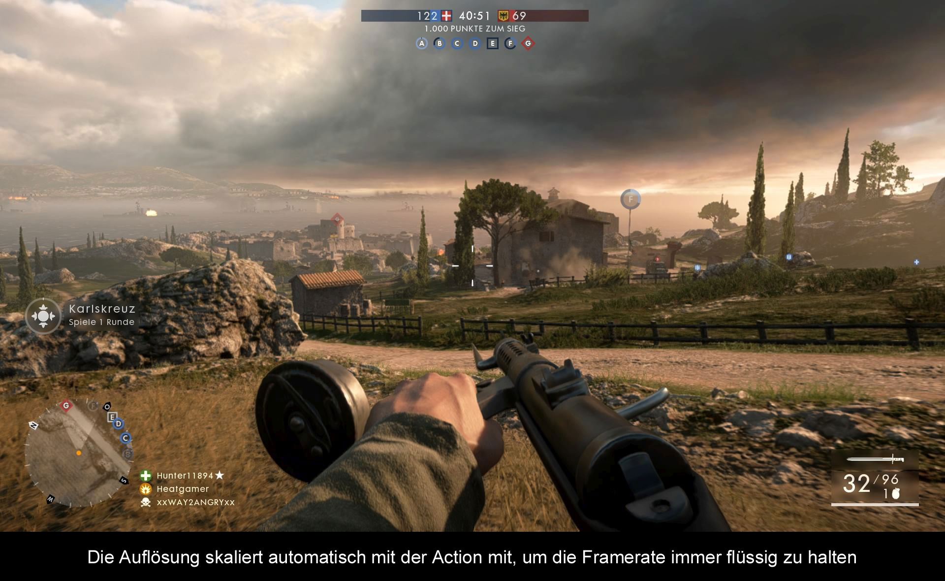 Auch diesmal spielen wir wieder in den gewohnten vier Klassen. Das sind einmal der Sturmsoldat, der Sanitäter, den Versorgungssoldaten und zuletzt die gute alte Späher Klasse. Sobald wir uns für eine Klasse entschieden haben, geht es auch schon auf das Schlachtfeld. Moderne Kriegsführung ist Vergangenheit, diesmal schickt uns DICE ins 1.Weltkrieg und wir befinden uns somit im weitgehend unbekannten Setting, die wir so selten zuvor gesehen haben. Zumindest auf der Konsole gibt es sehr wenige 1.Weltkriegs Shooter. Auf den ersten Blick ist natürlich die Grafik eine absolute Augenweide. Was DICE hier auf den Bildschirm gezaubert und gleichzeitig aus der Frostbite Engine rausgeholt hat, ist absolut genial. Es kracht an allen Ecken, der wuchtige Sound setzt dem ganzen noch einen drauf. Für mich ist es einfach die Bildgewalt schlechthin. Während es in den Vorgänger zwar große Karten gab, ist es grundsätzlich so gewesen das sich die Action an einem Ort abgespielt hat. Hier ist die ganze Map der Spielplatz für die Spieler. So ist überall auf der Karte jemand zu finden und es finden viele kleine Schlachten statt anstatt das alle nur zu einem Ort hinrennen und dort fleißig Granaten spammen und drauf hoffen, dass irgendjemand dabei draufgeht. Der andere Nachteil ist natürlich, dass es jede Menge Sniper gibt die gefühlt stundenlang campen und auf ihre Beute warten. Aber gut, in welchem Spiel gibt es sie nicht? Eine komplett neue Erfahrung wird mit den Behemoths im Multiplayer geboten. Das kann auf der einen Karte ein Zeppelin sein, auf einer anderen ist es wiederum ein Kriegsschiff. Diese sind besonders stark und sind meist nur durch Teamplay zu besiegen. Bei den Spielmodis ist sich DICE soweit treu geblieben, wir spielen immer noch Rush oder Conquest. Dennoch gibt es mit Kriegstauben und Operationen zwei neue Modis, die ihre Premiere innerhalb der Battlefield Reihe feiern. So spielen wir in Operationen eine Schlacht verteilt über mehrere Maps hinweg und müssen dafür Flaggen einnehmen und so die gegnerische Einheit weit nach hinten drängen und dafür sorgen das ihre Ticketanzahl immer weiter runtergeht.
