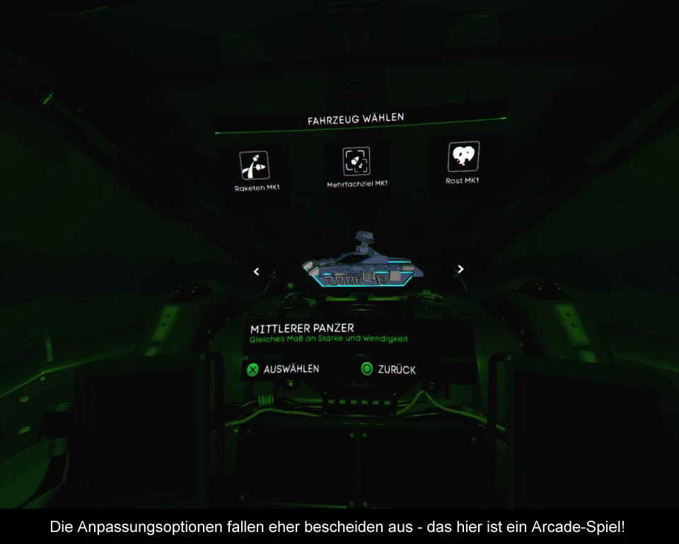 Die Geschichte von Battlezone ist recht rudimentär und schnell erzählt. Die Menschheit befindet sich im Krieg mit einem nicht näher genannten Feind und eure Aufgabe ist es die Zentrale der Gegner in einem Vulkan zu zerstören. Das besondere an der Kampagne ist nun, dass sie prozedural generiert wird. Ihr wählt euren Startseed (Der Wert von dem aus alles ausgehend berechnet wird) und dann geht's los. Vor euch ist eine Art Spielfeld und pro Runde könnt ihr ein Feld weitergehen bis ihr irgendwann an dem Vulkan ankommt. Jedes Spielfeld beherbergt eine Arena mit unterschiedlichen Aufgaben. Mal müsst ihr einen Sendeturm hacken, einen Konvoi begleiten oder eine feindliche Basis möglichst schnell stürmen. Das klingt abwechslungsreich, endet aber eigentlich immer darin das ihr einfach alle Gegner auf dem Schlachtfeld besiegen müsst. Dazu steht euch euer Panzer zur Verfügung, den ihr mit gesammelten Punkten verbessern könnt. Ihr bekommt neue Waffen oder auch Fähigkeiten, um sich zur Wehr setzen zu können. Wirklich kompliziert ist es nicht und so wird man quasi direkt ins Spiel geworfen. Gesteuert wird das Spiel mit den Sticks des DualShock 4. PlayStation VR ist nur dazu da, um sich im Panorama Cockpit umsehen zu können.