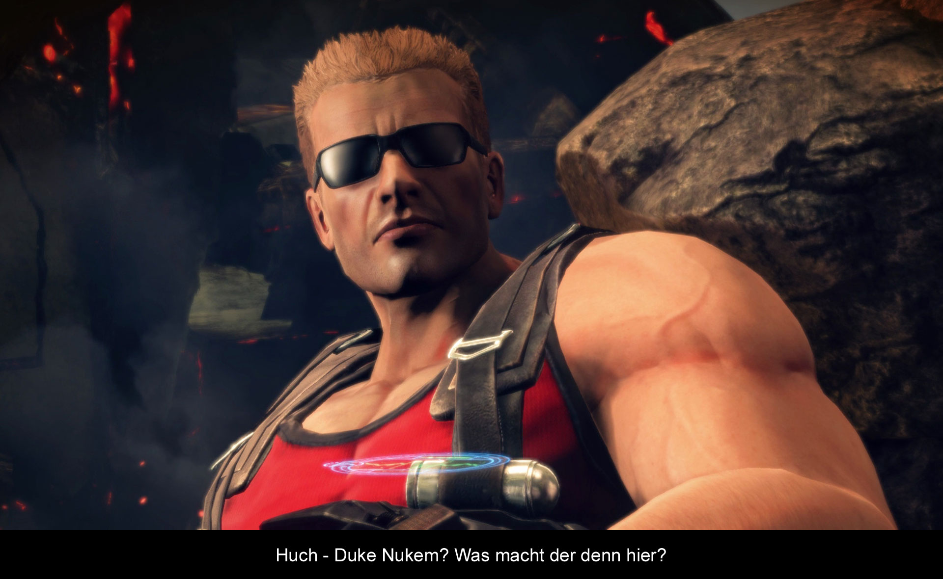 Eine der Neuerungen der Full Clip Edition von Bulletstorm ist die Hinzugabe von Duke Nukem in die Kampagne, welches definitiv auf Gearbox Beteiligung zurückzuführen ist. Im Rahmen des Einzelspielermodus übernimmt Duke die Rolle von Gray, und zwar komplett digitalisiert und vertont. Während es zwar durchaus lustig mitanzusehen ist, wie Duke versucht, mit seiner überraschenden Existenz in der Welt von Bulletstorm zurechtzukommen, schwebte in mir jedoch stets die Frage des „Warums“ durch den Kopf. Ja, beide Serien sind in der Tat für ihre ausgesprochen vulgäre Art bekannt, aber meiner Meinung nach befindet sich Bulletstorm auf einer anderen Ebene, die mit ihren gelungenen Dialogen nicht ganz so veraltetet wirkt, wie Duke Nukems Ergüsse, mit denen ich heutzutage nicht mehr viel anfangen kann. Während man immerhin sämtliche Texte ausgetauscht hat, bleibt das Gameplay jedoch wie gehabt. Erwartet also keine exklusiven Waffen a la Duke.