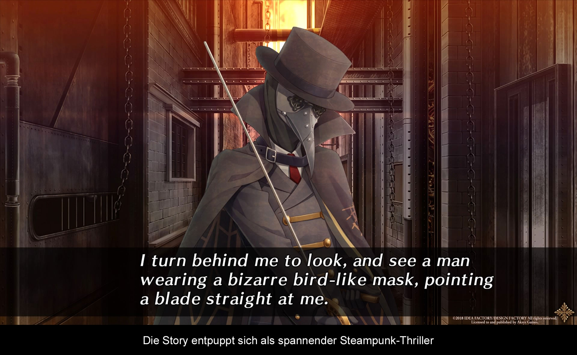 Die Story selber ist in 13 Kapitel unterteilt und wirklich äußerst lang. Wer also bis zum Ende durchhalten will, sollte sich definitiv auf rund 40 Stunden an Inhalt vorbereiten. Dennoch muss ich zugeben, dass das Geschehen durchaus nicht uninteressant ist. Na klar, die verschmusten Momente sich vielleicht nicht jedermanns Ding, aber im Gegensatz zu vielen anderen Vertretern des „Otome-Genre“, welches sich explizit an weibliche Gamer richtet, hält man sich mit typischen Genre-Gepflogenheiten weitestgehend zurück, wodurch selbst ein 08/15-Zocker möglicherweise Gefallen an diesem Titel finden wird. Während Cardia wie eingangs erwähnt nach und nach mehr Tiefgang gewinnt, und auch eine eigene Meinung und Ansichtsweise entwickelt, präsentieren sich die männlichen Gefährten durchaus als halbwegs gesellige Charaktere, die ab und zu ein wenig zu überspielt und übertrieben wirken, aber wenn es darauf ankommt auch echten Tiefgang beweisen und im großen Maße zur Suche nach Cardias Großvater beitragen. Hinzu kommen gelungene Story-Wendungen und auch lustige Momente, die dem Londoner Steampunk-Alltag ein wenig Abwechslung verleihen. Apropos Steampunk: In Sachen Word-Building hat man sich sehr viel Mühe gegeben. Obwohl die Geschichte nur in Bild- und Textform dargestellt wird, dauert es nicht lange ehe man ein Gefühl für die Umgebung bekommt. Dies liegt sowohl an den authentischen Dialogen, als auch am erstklassigen Artstyle, der das Gefühl des dreckigen, aber dennoch monumentalen London absolut widerspiegelt. Hinzu kommt eine gute (japanische) Synchronisierung und ein gelungener Soundtrack, der erheblich zur Atmosphäre des Spiels beiträgt. Im Vorfeld habe ich erfahren, dass einige der talentiertesten japanischen Synchronsprecher für das Spiel angestellt wurden, und dies lässt sich wirklich heraushören. Obwohl ich die Sprache nicht verstehe, werden Emotionen hervorragend wiedergegeben. Man fühlt es einfach. Abschließend möchte ich nochmal auf das Gameplay eingehen, welches relativ „straight-forward“ ist und nicht viel Erklärung benötigt. Genre-untypisch gibt es, wie schon erwähnt, weder Dating-Sim-Aspekte noch Mini-Spiele. Hier und da trifft man lediglich auf einige Entscheidungszweige, die darüber entscheiden, welches Ende man im Anschluss erhält. Von diesen gibt es übrigens Unmengen, wodurch ein Guide für ein komplettes Durchspielen der Geschichte definitiv zu empfehlen ist.