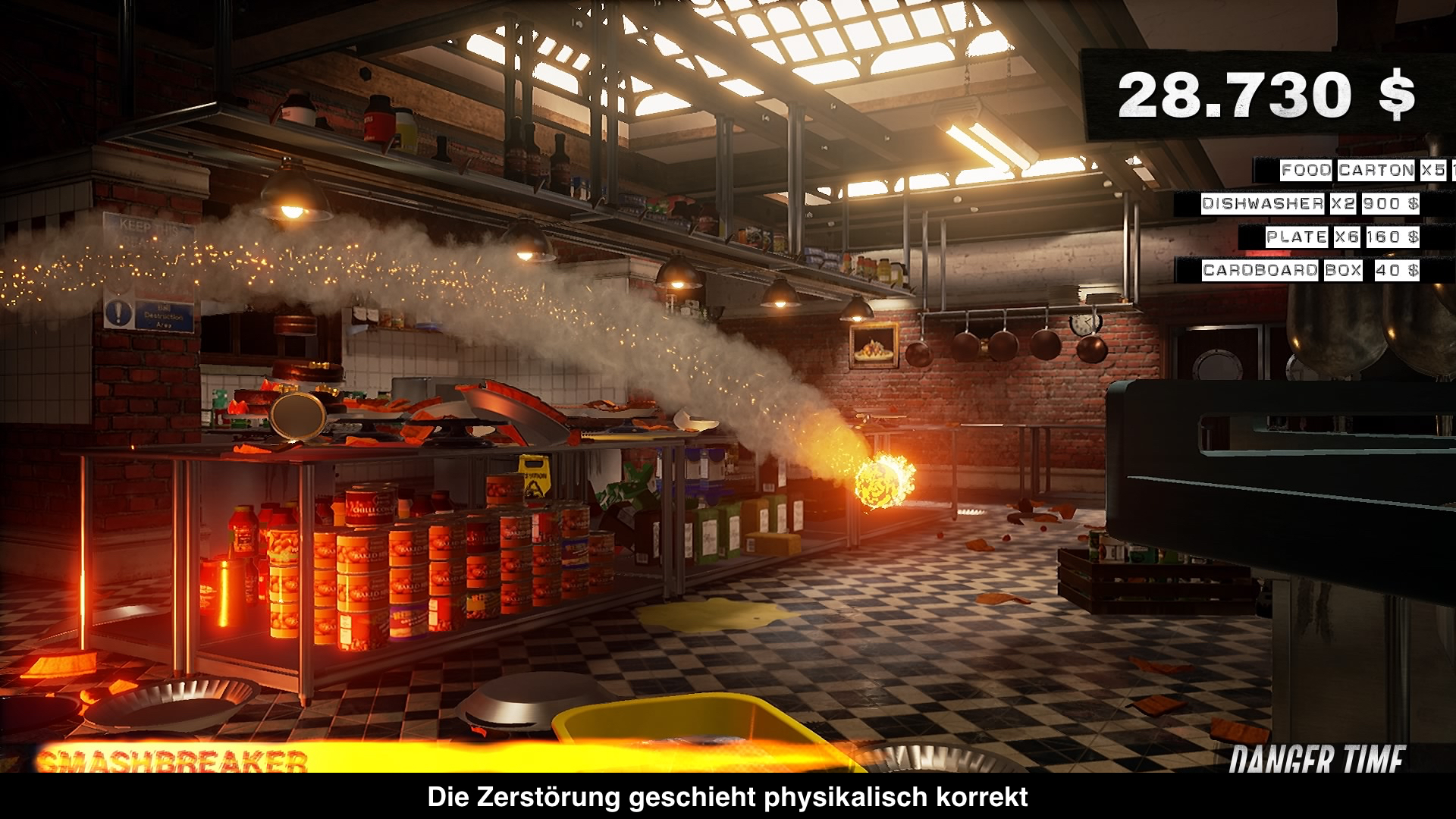 Erinnert ihr euch noch an den Crash-Modus der Burnout Serie? Dabei handelte es sich um einen Extra-Modus, wo man mit voller Geschwindigkeit in andere Autos und Gegenstände knallte, um dann im Anschluss mit Hilfe von Explosionen möglichst viele Sachen zu zerstören. Umso mehr Objekte man zerstört hat, desto größer war am Ende auch die Endpunkzahl. Und dies ist im Grunde auch das Prinzip hinter Dangerous Golf. Anstatt jedoch Karambolagen durch ein Auto in Gang zu setzen, hat man den Maßstab etwas zurückgeschraubt. Stattdessen nutzt man nun einen Golfball, um möglichst viel Schaden anzurichten. Da es auf dem offiziellen Grün jedoch kaum etwas zu zerstören gibt, hat man sich für das Abschlagen der Bälle für gewöhnliche Einrichtungen, wie Küchen oder Museen entschieden, wo haufenweise Objekte darauf warten zerstört und demoliert zu werden. Es gibt vier Länder, die jeweils mehrere Levels beinhalten, insgesamt gibt es über 90 Level. Leider bleibt die optische Variation dabei oftmals auf der Strecke, wodurch man immer wieder auf die gleichen Schauplätze trifft, nur die Missionsziele ändern sich von Kurs zu Kurs. Ein bisschen mehr Abwechslung wäre wünschenswert gewesen. Ebenso wünschenswert wäre ein ausgeglichener Schwierigkeitsgrad gewesen, weil in den späteren Missionen vieles vom Zufall abhängig ist. Positiv anzumerken ist die Tatsache, dass man die Kampagne auch mit im Co-Op-Modus spielen kann.