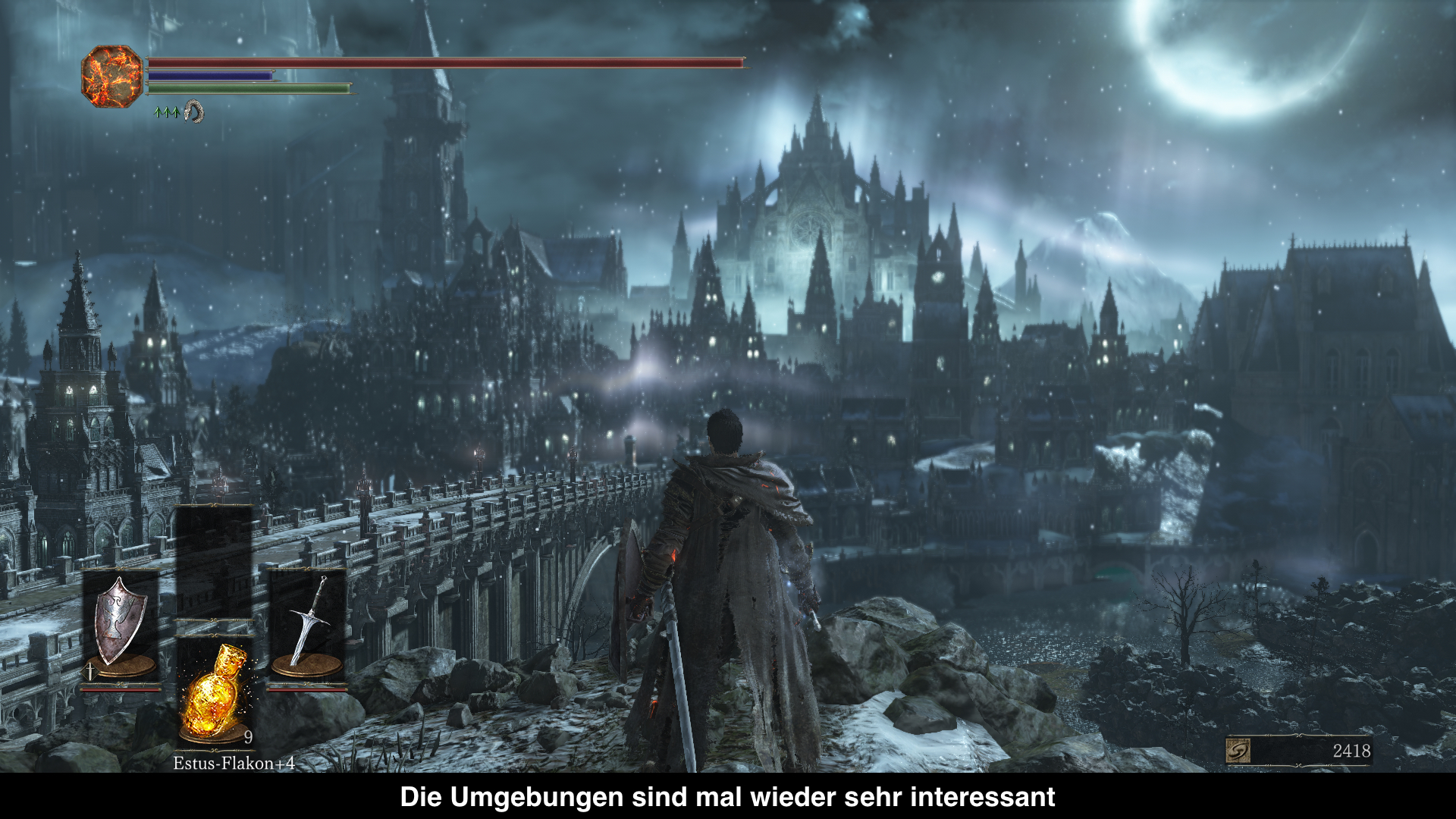 Als ich die ersten Spielstunden hinter mir hatte, war ich etwas enttäuscht über die schlechte Performance. Ich weiß nicht wo ran es liegt aber die Entwickler bekommen diese Framedrops einfach nicht in den Griff. Von einer absolut stabilen 30fps Version von den Souls Spielen können wir nach wie vor träumen. Da kann man auch nicht außer Acht lassen, das es ganz klar eben auch negativ dass Gameplay beeinflusst, auch wenn es inzwischen schon mehrmals gepacht wurde und es mittlerweile besser läuft, wenn auch nicht perfekt. Darüber hinaus ist es grafisch sehr ansehnlich und fängt das herrliche Artdesign der Reihe perfekt ein. Die Grafikbombe wie einige Triple A Spiele war Souls nie, aber wirklich schlecht haben sie auch nicht ausgeschaut und daher ist das, was wir hier bekommen zufriedenstellend.