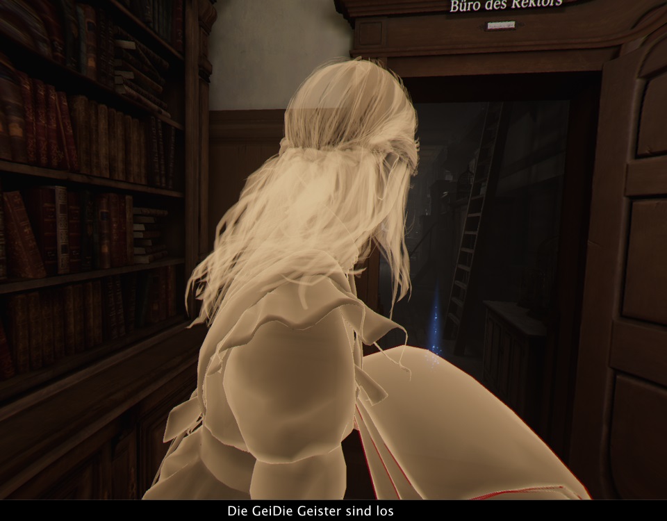 Man sollte also wahrlich kein Actionspiel erwarten. Stattdessen kann man es eher mit Vertretern des klassischen Point & Click Adventure Genres vergleichen. Man hört eine fantastische Geschichte die in Bruchstücken erzählt wird, welche man sich durch viele Zeitsprünge hinweg zu einem Gesamtbild zusammensetzt. Besonders interessant wird es, wenn man später nicht bloß nach vorne springt, sondern auch mal in die Vergangenheit, aber mehr will ich hiervon gar nicht verraten. Manipulieren könnt ihr jeweils nur ganz bestimmte Gegenstände in der Welt, wovon die meisten auch sofort wieder an ihren ursprünglichen Platz zurück springen. Diese dienen oft dazu, einen Gedanken oder Gesprächsfetzen in Form einer kleinen gelben Lichtkugel freizuschalten. Manchmal löst es aber auch eine kurze Sequenz aus, in der sich begrenzt auf das nähere Umfeld etwas verändert oder jemand mit euch spricht. Ja, die Menschen sind sich eurer Anwesenheit durchaus bewusst, und die Interaktion über die Grenzen eurer Daseinsform hinweg spielt eine zentrale Rolle in der Geschichte. An anderen Punkten in der Welt könnt ihr von den einzelnen Personen eine Art temporalen Schatten in transparenter Form finden. Diese geben euch Hinweise darauf, was ihr zu erledigen habt. Habt ihr alle Aufgaben im aktuellen Abschnitt erledigt, könnt ihr zur nächsten Epoche springen, wodurch sich natürlich einiges ändert, neue Wege frei gibt, jedoch andere versperrt. Eine zeitübergreifende Sammelaufgabe gibt es auch, aber das drängt sich überhaupt nicht in den Vordergrund.