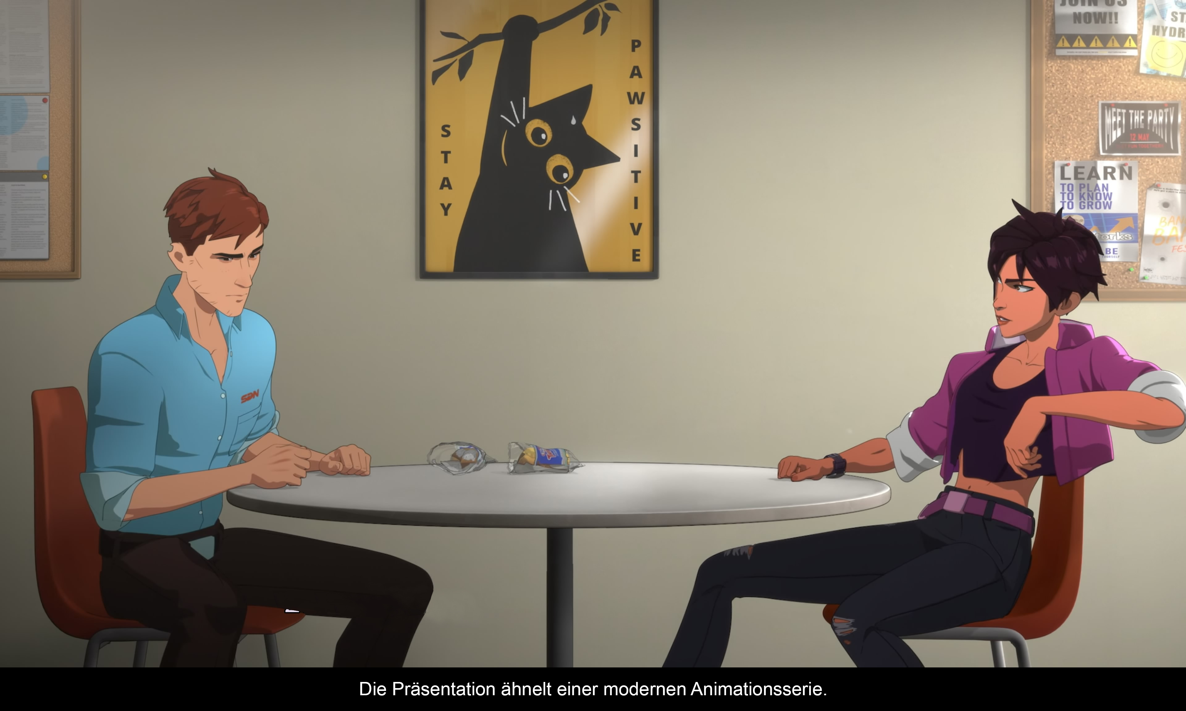 Das Gefühl, dass man es hier mit einer „Serie zum Spielen“ zu tun hat, kommt vor allem von der hervorragenden Auswahl der Sprecher. Aaron Paul (Breaking Bad) spricht Robert. Laura Bailey, eine der bekanntesten Stimmen der Branche, ist für Invisigal zuständig, und Blond Blazer wird von Erin Yvette gesprochen. Es finden sich noch weitere bekannte Stimmen von Synchronsprechern und dem Cast von Critical Role wieder – eine hochkarätige Besetzung. Jedoch müssen wir uns mit den englischen Sprechern begnügen; für alle anderen Sprachen gibt es nur Untertitel. Auch die Auswahl der teilweise lizenzierten Musik ist gelungen, ebenso wie der eigens komponierte Soundtrack.