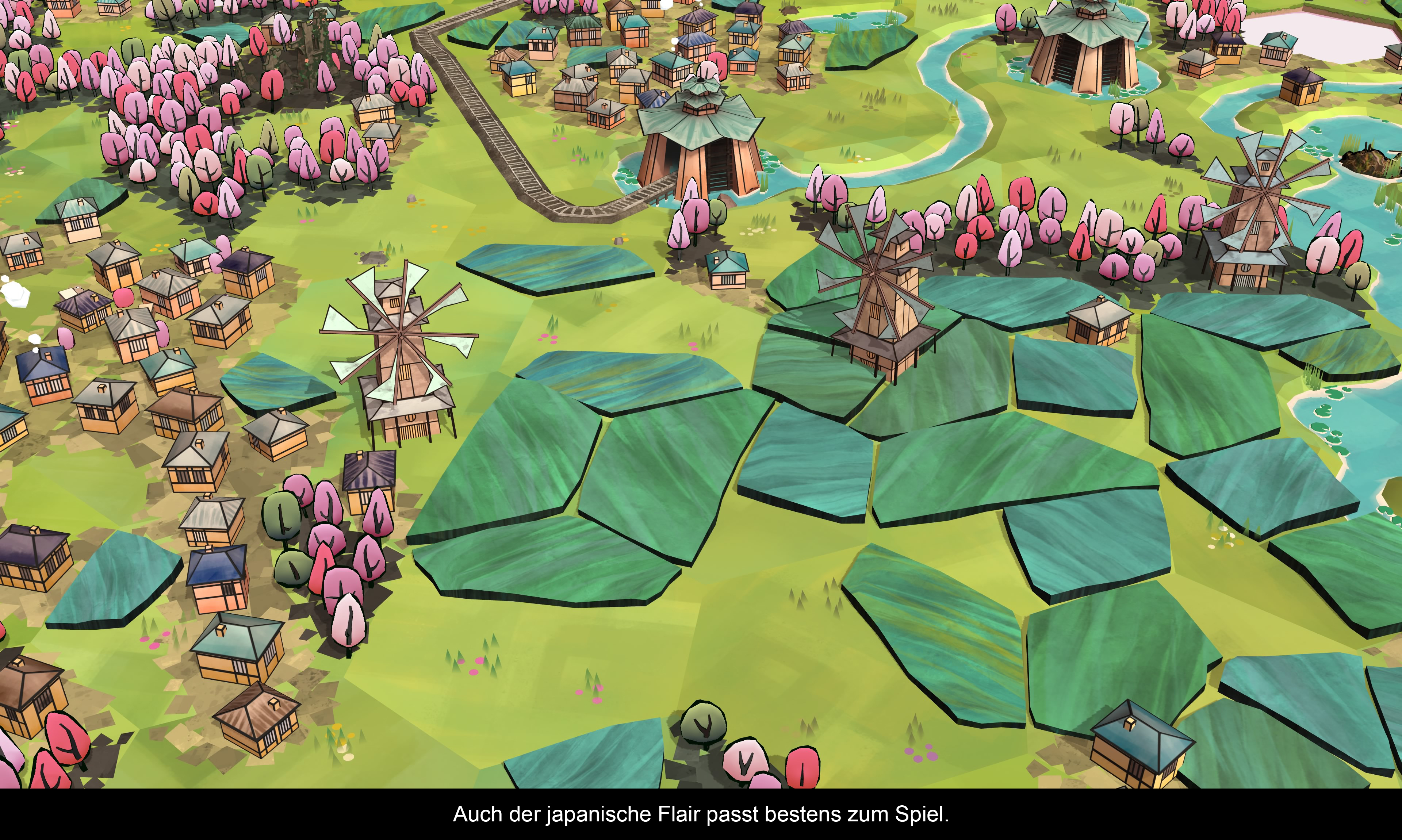 Ein Puzzlespiel muss kein grafischer Brecher sein, sondern sollte immer klar lesbar sein. Der simpel gehaltene Grafikstil unterstützt das perfekt. Ob Häuser, Bäume oder Wiesen – alles hat diesen handgemachten Diorama-Stil und trägt definitiv zum Erfolg des Spiels bei. Dazu kommen liebevolle Animationen, wie die langsam drehende Windmühle, die dampfende Lok auf den Schienen und der kleine Fischkutter. Das macht alles lebendig. Mit der Zeit schaltet man weitere Stile frei und kann das Spielfeld beispielsweise in blühende Lavendelfelder verwandeln oder es im japanischen Stil halten. Musikalisch gibt es ruhige, entschleunigte Musik, die dezent im Hintergrund bleibt. Hin und wieder sind Geräusche zu hören, ebenso das wohltuende Klingeln, wenn man das perfekte Plättchen gelegt hat.