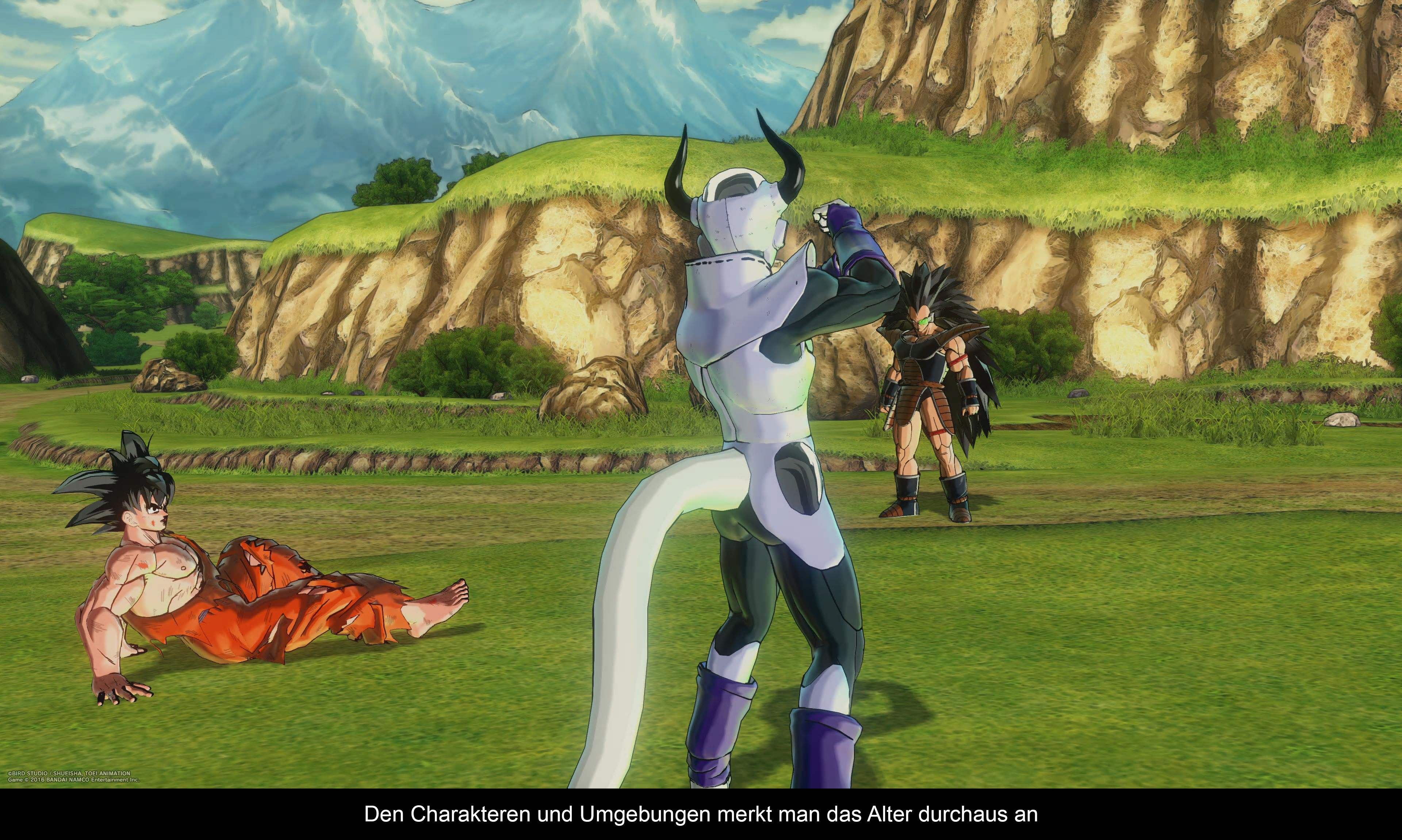 Und das Gameplay an sich ist nicht schlecht. So kontrolliert ihr euren Kämpfer durch eine weitläufige 3D-Welt, wo ihr stets auf verschiedene Gegner trefft, die ihr dann in bester DB-Manier mittels Faust- oder KI-Attacken besiegen müsst. Während ihr euren Kämpfer also mit dem linken Analog-Stick durch die Gegend manövriert, werden die Face-Buttons genutzt, um verschiedene Attacken durchzuführen. Und gerade bei den Attacken steht ihr vor der Qual der Wahl, da ihr im Laufe der Zeit vom Kame Hame Ha bis hin zum Ultra Instinkt eine schier unendliche Anzahl an Fähigkeiten freischalten könnt. Dabei ist es allerdings immer wichtig, bei der Auswahl eurer Skills auf eine gute Balance zwischen Nah- und Fernkampf-Attacken zu setzen, da eure Gegner sämtliche Tricks anwenden werden, um euch das Handwerk zu legen. Gleichzeitig dient jeder Kampf auch dazu, euren Charakter immer stärker zu machen. Die gewonnenen Erfahrungspunkte kann man dann im Anschluss auf verschiedene Werte, wie Stärke, Ausdauer oder Super-Attacken verteilen. Und gerade die Defensive sollte hierbei nicht vernachlässigt werden, da eure Gegner insbesondere in den späteren Missionen gnadenlos zuschlagen können. Anstatt also alle Fähigkeitspunkte in die Offensive zu stecken, lohnt es sich auch, die Ausdauer nach und nach aufzuwerten, um feindlichen Manövern geschickt ausweichen zu können. Und während die Story- und Trainer-Missionen (hier fungieren Serien-bekannte Charaktere als Trainer und bringen euch ihre persönlichen Special Moves bei) in Sachen Schwierigkeitsgrad noch recht akzeptabel sind, warten vor allem im End-Game zahlreiche Inhalte auf euch, die einen gut gestärkten Charakter voraussetzen. Später dreht sich der Grind dann auch nicht nur um die zuvor angesprochenen Charaktere-Werte, sondern auch um die anlegbaren Ausrüstungsgegenstände, die euch einen zusätzlichen Boost geben können. Es liegt dann am Spieler selbst, wie viel Grind man in das Spiel investieren möchte. Zugegebenermaßen reichte es mir als Casual-Spieler, die Kampagne zu spielen und ein paar Nebenmissionen zu machen, aber wer sich vollständig in die Welt von Xenoverse 2 verlieren möchte wird reichlich Content finden, um sich Dutzende von Stunden an die Konsole zu binden. Hier rücken insbesondere die Mehrspieler-Modi in den Vordergrund, wo man entweder offline (mit KI-gesteuerten Charakteren) oder online mit bis zu 2 weiteren Spielern verschiedene Missionen bestreiten kann, um wertvolle Items zu erhalten. Alles in allem lässt sich also sagen, dass Xenoverse 2 reichlich Content bietet und euch über viele Stunden unterhalten kann. Allerdings muss ich an dieser Stelle auch sagen, dass das Gameplay inzwischen nicht mehr ganz so zeitgemäß ist. Klar macht es Bock, mit wuchtigen KI-Attacken durch die Gegend zu schießen, aber angesichts der Tatsache, dass man auf Dauer wirklich Hunderte von Kämpfe bestreiten wird, kann man nicht leugnen, dass mit der Zeit eine gewisse Sättigung eintritt. Insbesondere, wenn man sich zusätzlich auch noch dazu entschließt, ein Blick auf die zahlreichen DLC-Add-Ons zu werfen, die zwar auf der einen Seite zahlreiche Zusatzinhalte, wie neue Charaktere, Kostüme, Szenarien, Fähigkeiten und Missionen mit sich bringen, aber wiederum auch ganz schön kostspielig sein können und Spielerisch kaum was Neues bieten.