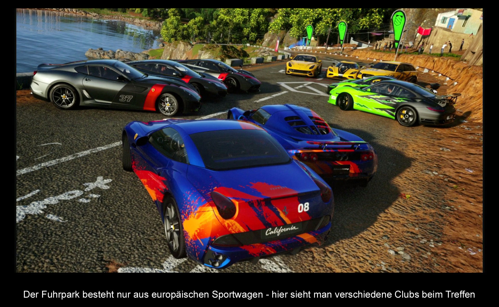 Im Vordergrund von „Driveclub“ stehen die Social Features. Die finden sich im Spiel an drei Stellen wieder. Denn während man Rennen fährt, werden hin und wieder diverse Herausforderungen eingeblendet. Dabei gilt es in einem gewissen Bereich auf der Strecke der Ideallinie zu folgen, eine Durchschnittsgeschwindigkeit zu erreichen oder zu driften, um Punkte zu holen. Immer wird man dabei mit einem Spieler der Community verglichen und wird so zu Höchstleistungen getrieben. Denn wenn man in einer Runde eine Herausforderung schlägt, wird in der nächsten Runde dann der nächst bessere der Herausforderer und man muss noch besser fahren. Für ein erfolgreiches Abschließen der Duelle gibt es Erfahrungspunkte, die man auch für gutes Fahren und gute Ergebnisse erhält und mit denen man im Level aufsteigt. Diese Level werden benötigt, um neue Fahrzeuge freizuschalten. Denn statt sich die Fahrzeuge mit Ingame-Credits oder einem ähnlichen System zu kaufen, erhält man die Fahrzeuge einfach kostenlos, wenn man ein bestimmtes Level erreicht hat. Zu Beginn geht dies noch recht schnell, doch ca. ab Level 25 dauert der Aufstieg immer länger. Übrigens zählen die erlangten Erfahrungspunkte nicht nur für das eigene Level, sondern auch für das Clublevel. Denn in „Driveclub“ darf man einen eigenen Club gründen oder einem anderen beitreten. Ein Club besteht dabei aus maximal bis zu sechs Spielern und stellt eine Art Verbund dar, der sich durch ein eigenes Logo und ein eigenes Fahrzeugdesign präsentieren kann. Es gibt auch einige Vorteile, wenn man in einem Club ist. Denn nur so kommt man an wirklich alle Fahrzeuge und dadurch das alle zum Clublevel beitragen, kann man auch durch „Nichtstun“ profitieren. Letztlich soll es jedoch eine Anlaufstelle dazu sein, um immer jemanden zum Spielen zu haben. Natürlich können sich einzelne Clubs auch duellieren. Dies funktioniert am besten mit den Herausforderungen im Spiel. Denn nach jedem Rennen könnt ihr eine Herausforderung erstellen, die entweder Solo oder von einem Club gemeistert werden muss. Dabei kann man basierend auf dem letzten Rennen mit den gleichen Bedingungen eine Herausforderung mit einem Countdown erstellen und die anderen Spieler sollen dann eure Bestzeit, Punktzahl oder was auch immer ihr möchtet, schlagen. So gibt es dann ein eigenes kleines Leaderboard pro Herausforderung und ihr habt die Wahl ob ihr nur ein paar Leute dazu einladen möchtet oder aber die ganze Welt teilhaben lassen wollt.